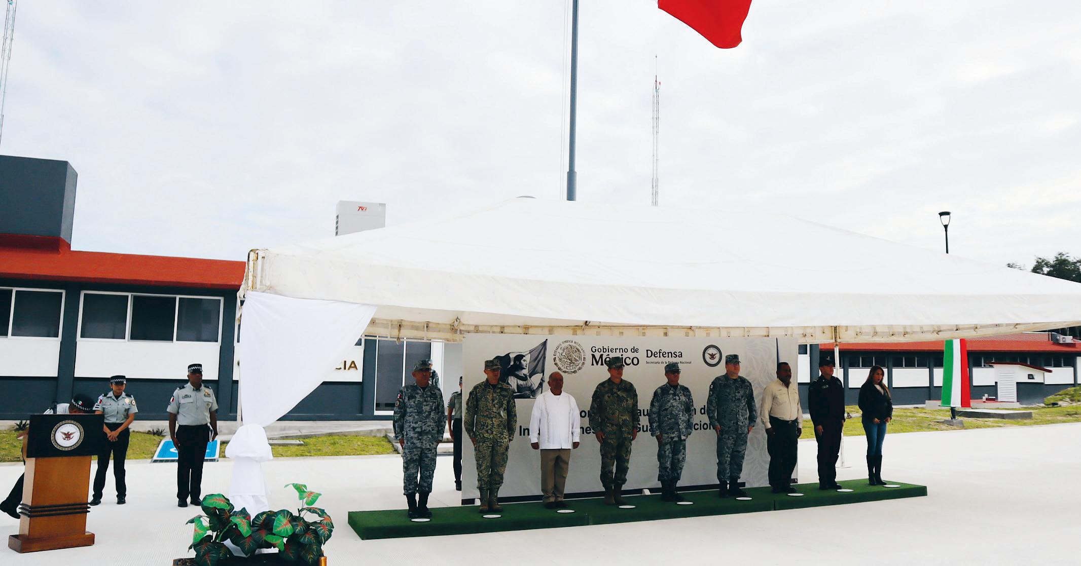 La Guardia Nacional (GN) inauguró ayer las instalaciones de la Cuarta Compañía del Segundo Batallón de Seguridad Ferroviaria del Sureste y de la Compañía del Aeropuerto Internacional de Chetumal, una obra estratégica para el resguardo del Tren Maya y de la terminal aérea de la capital del estado, que se concretó pese a señalamientos sobre el avance de los trabajos sin autorización ambiental federal. Las nuevas instalaciones se edificaron en un predio de 50 mil metros cuadrados, con una inversión de 268 millones de pesos, y tienen capacidad para 140 elementos