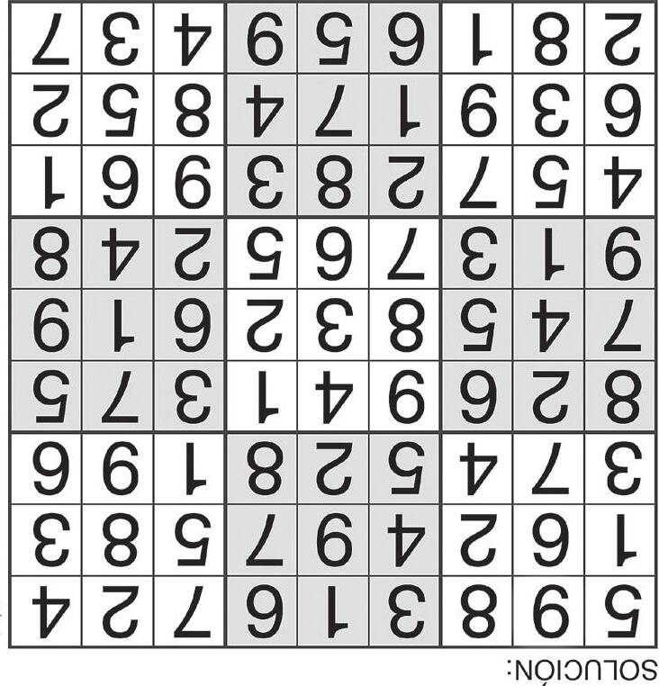 Complete el recuadro de tal manera que cada fila, columna y cuadro de 3x3 tengan los números del 1 al 9.