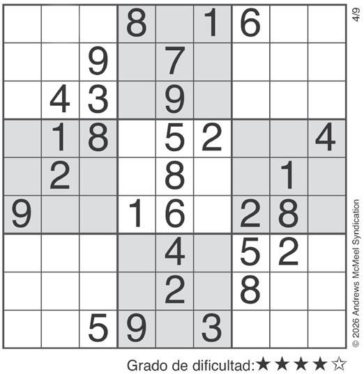 Complete el recuadro de tal manera que cada fila, columna y cuadro de 3x3 tengan los números del 1 al 9.