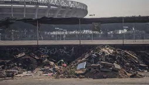 Sobre las obras públicas, a la altura de la Calzada de Tlalpan, aún no está completada la banqueta que da al acceso principal del inmueble, mientras que en el Circuito Estadio Azteca no hay pavimento desde los cruces con San Celso, hasta Tlalmanalco, a menos de 100 metros de Tlalpan. Tras un recorrido alrededor del Coloso de Santa Úrsula, las obras externas aún lucen sin avance real, con un estacionamiento picado en algunos sectores, que hoy sirve más como basurero de la misma administración encargada de la remodelación.