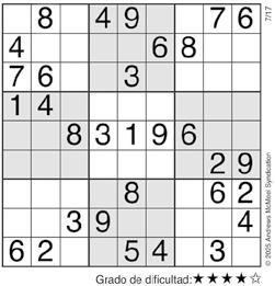 Complete el recuadro de tal manera que cada fila, columna y cuadro de 3x3 tengan los números del 1 al 9.