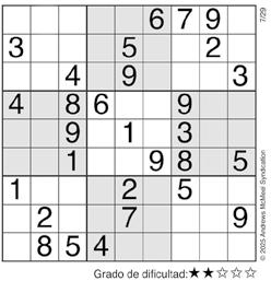 Complete el recuadro de tal manera que cada fila, columna y cuadro de 3x3 tengan los números del 1 al 9.