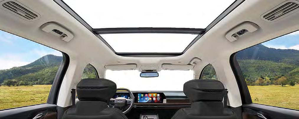 El interior combina materiales de buena calidad con una ergonomía bien pensada. El sistema de infoentretenimiento es intuitivo y compatible con Apple Car Play y Android Auto inalámbricos, lo cual facilita conectividad sin cables.