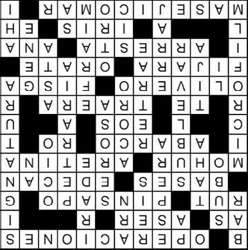 41. Antigua medida de longitud. 43. Ópalo noble. 45. Interjección que denota sorpresa. 46. Juego de manos.