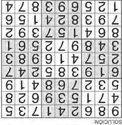Complete el recuadro de tal manera que cada fila, columna y cuadro de 3x3 tengan los números del 1 al 9.