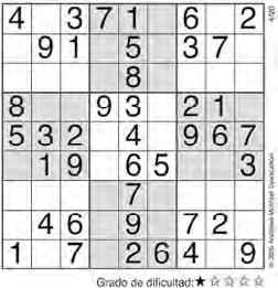 Complete el recuadro de tal manera que cada fila, columna y cuadro de 3x3 tengan los números del 1 al 9.