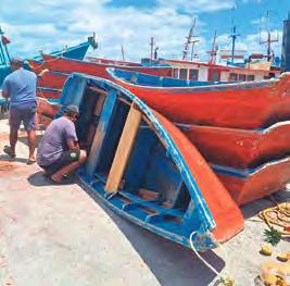MANTENIMIENTO. Hombres del mar realizan labores de reparación y revisión de sus unidades para salir a pescar.