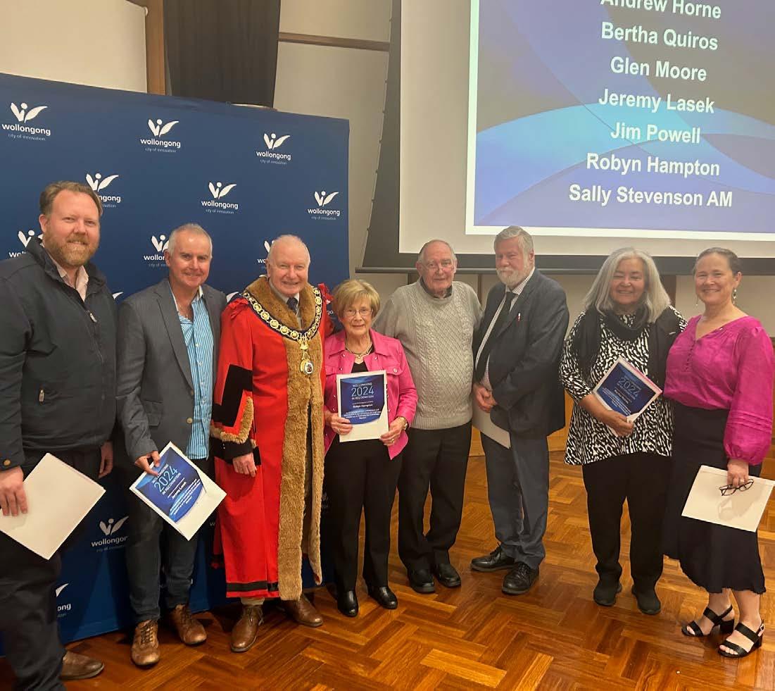 Others recognised at the ceremony included Shaz Harrison from Need A Feed, the Friends of Wollongong Botanic Garden for 40 years’ service, David Bere for 30 years volunteering with the State Emergency Service (SES), Aunty May Button for Aboriginal initiatives and knowledge sharing, and Ian Garling for two decades of leading Whipbird Bushcare at Balgownie.