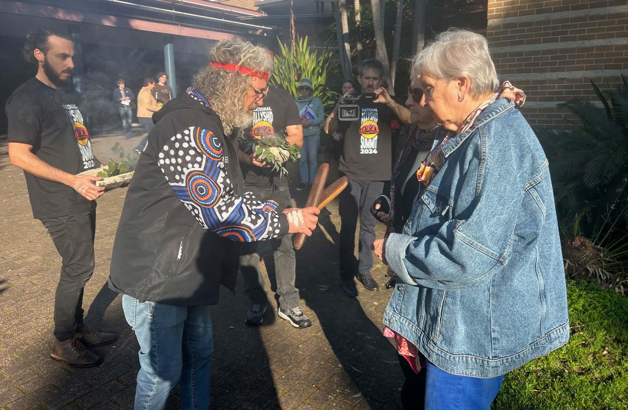 Following a moving smoking ceremony in the crisp early morning on the University of Wollongong (UOW) campus, our 2024 Citizen of the Year, respected elder Dr Aunty Barbara Nicholson, provided the Welcome to Country at the first National Allyship Day Summit.
