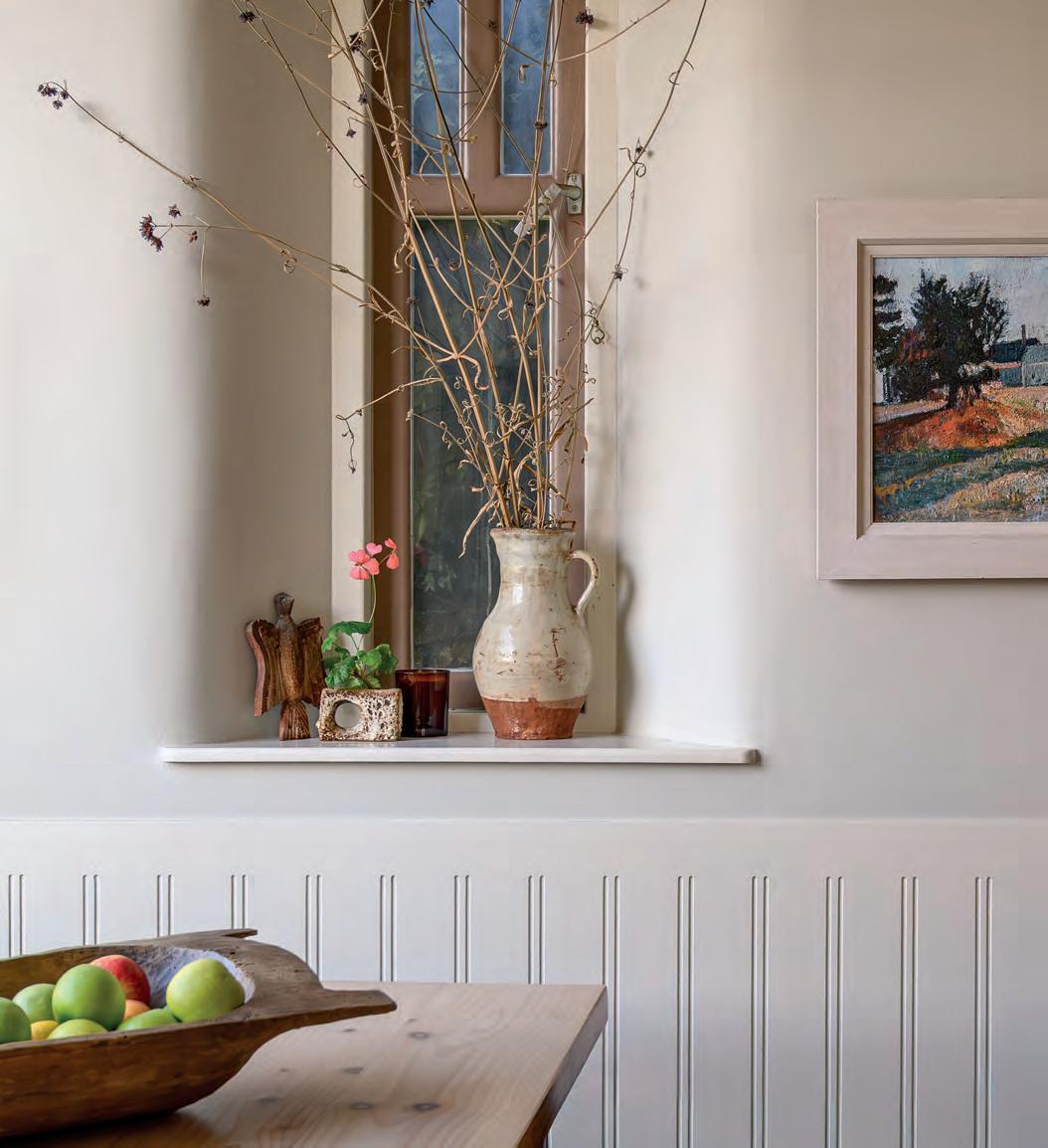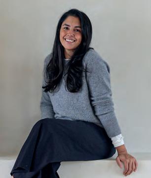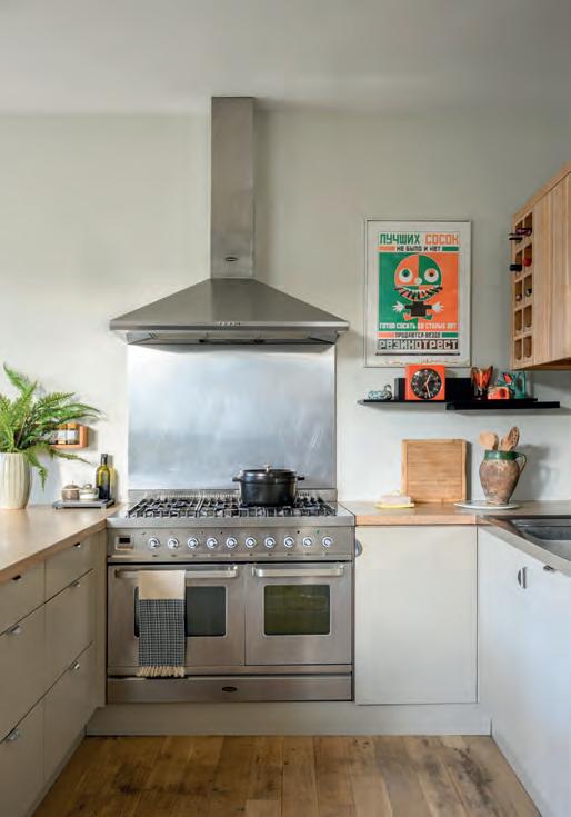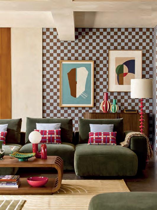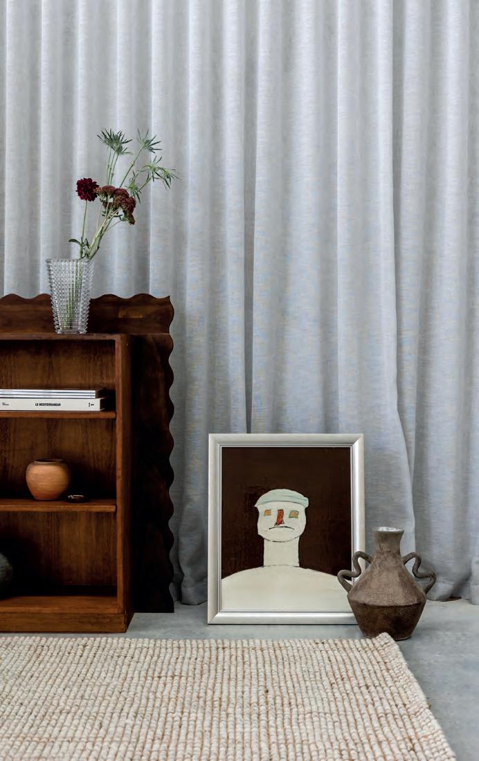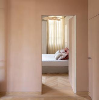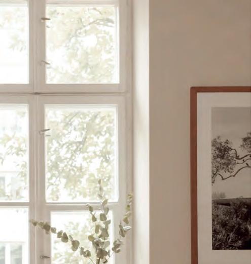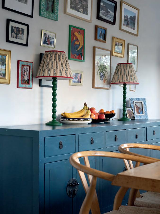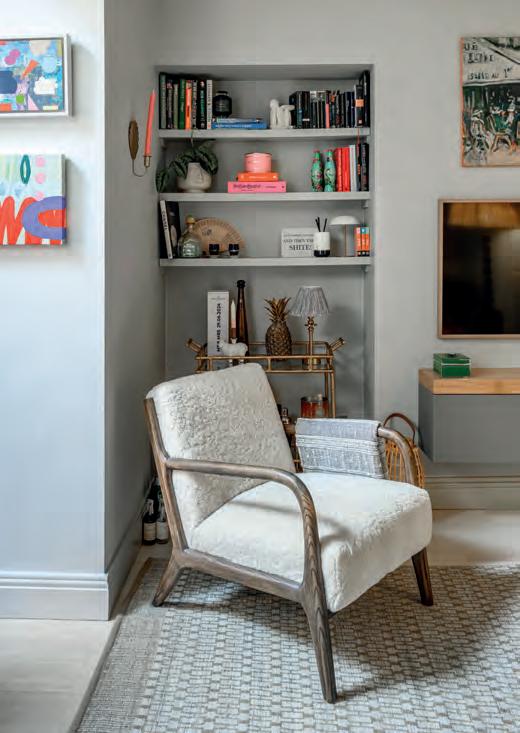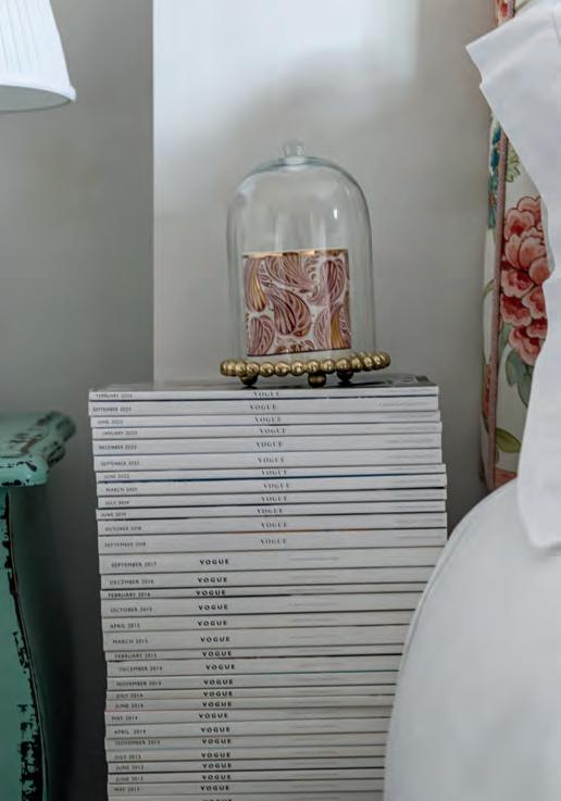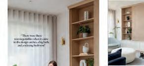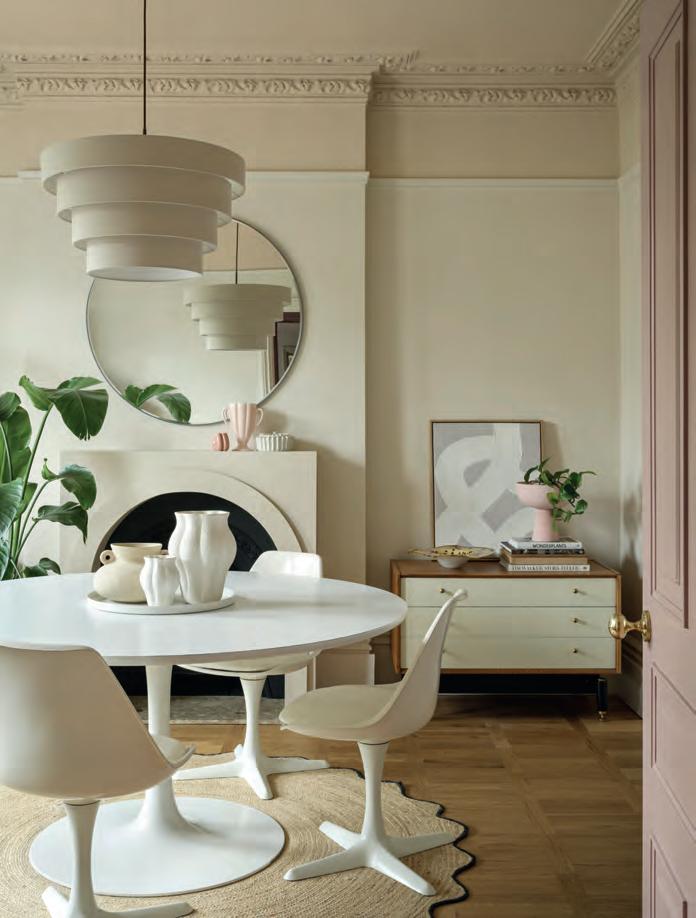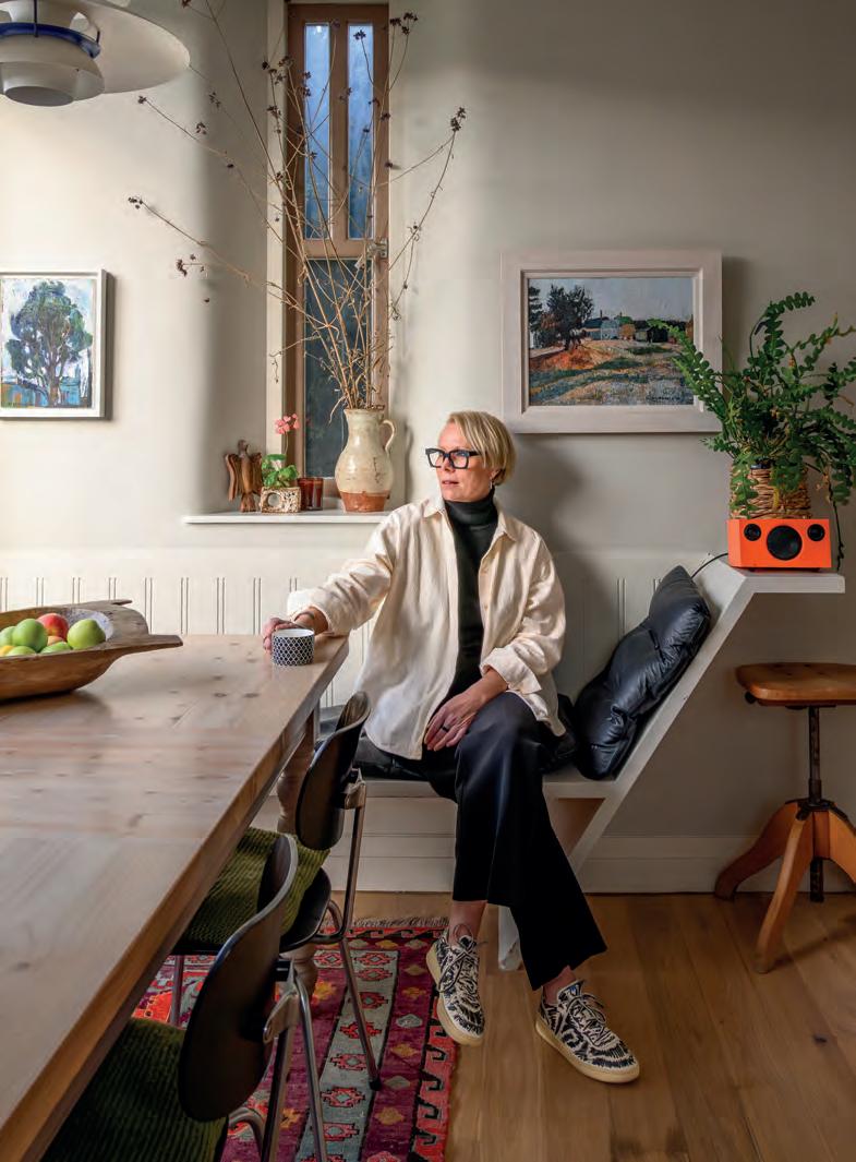paints. I avoided stark white paint, using instead soft pigments from French brand Argile, whose nature-inspired tones set the palette. Lighting is key. Every piece of art is intentionally lit - if you love something enough to display it, you should see it properly. A home should be social. Eight can gather at our dining table, eight can relax in the living room, and there’s room for everyone to gather around the kitchen island with wine. Hosting brings me joy, so the layout supports that.