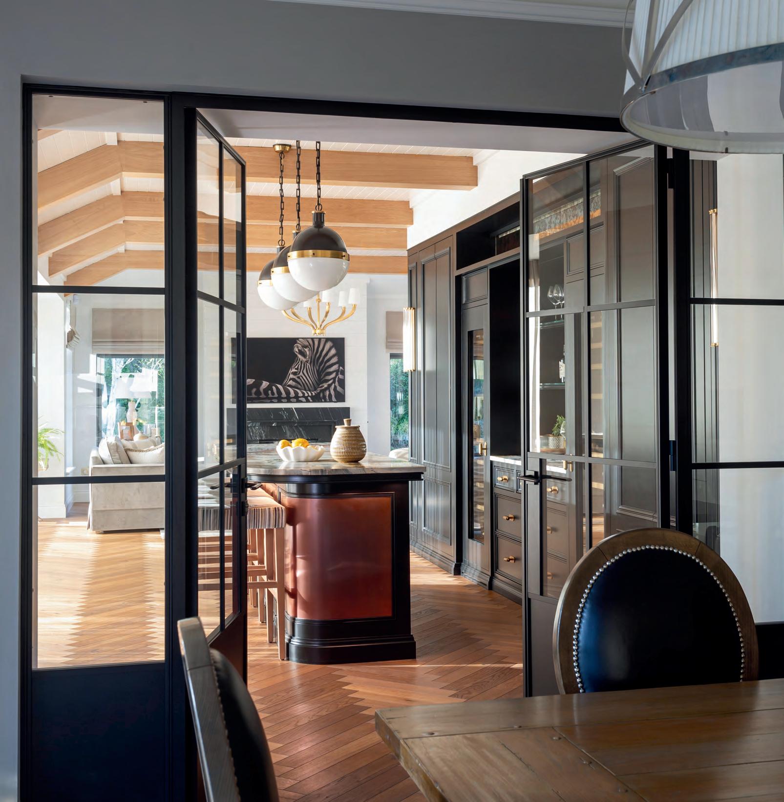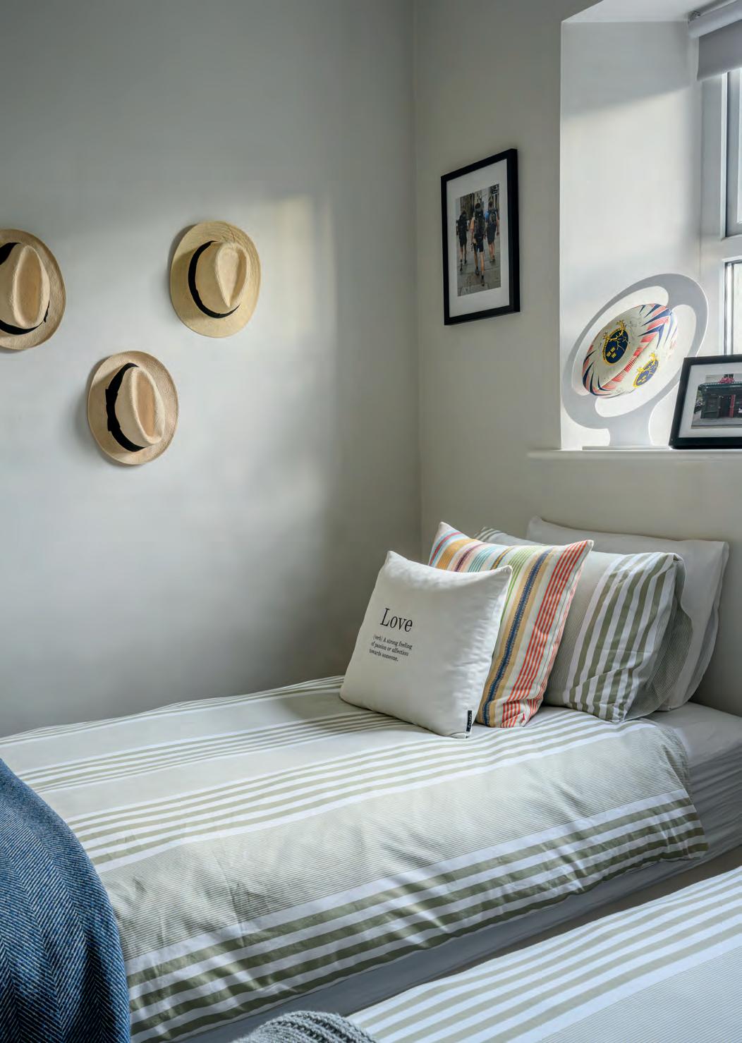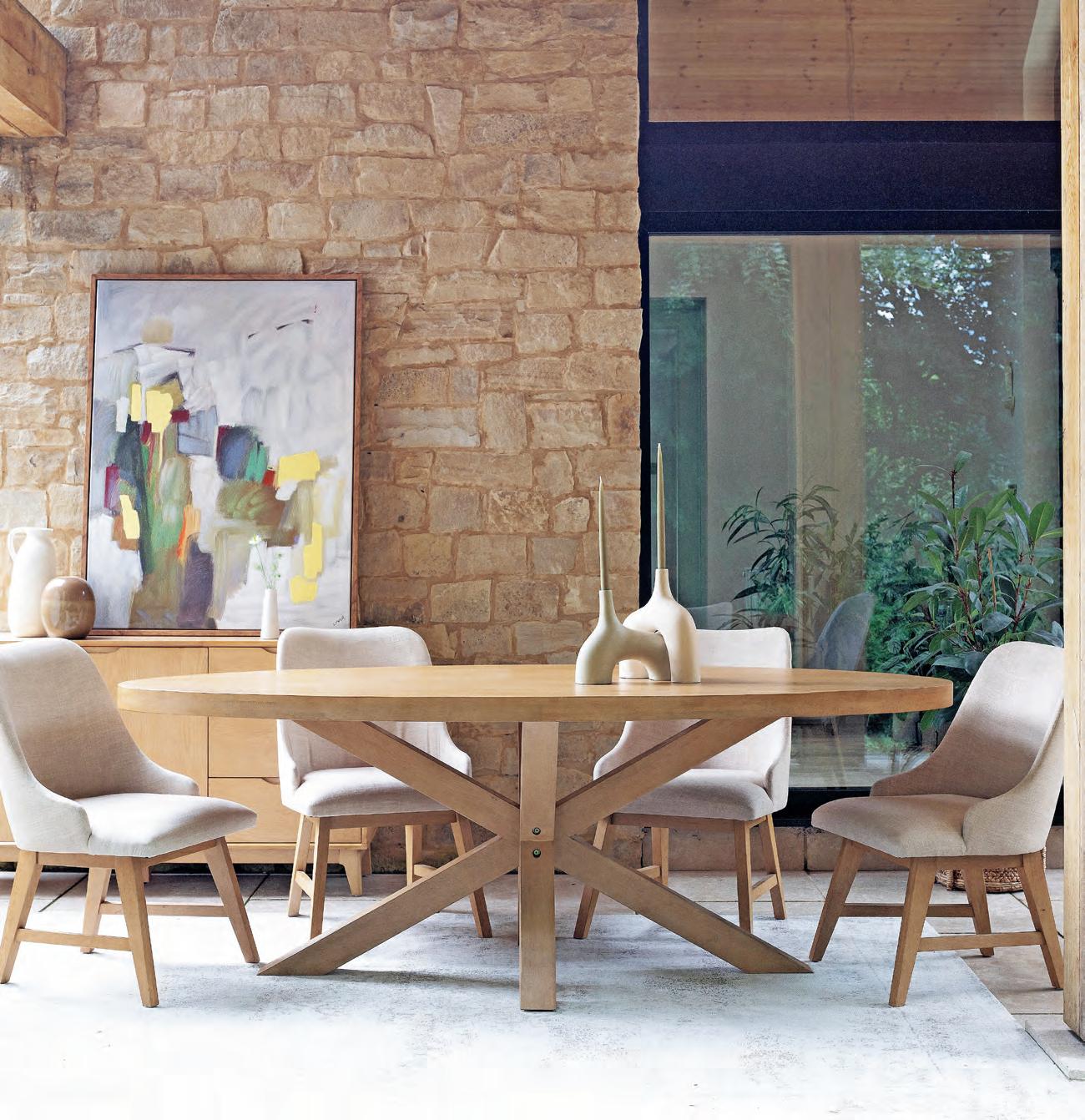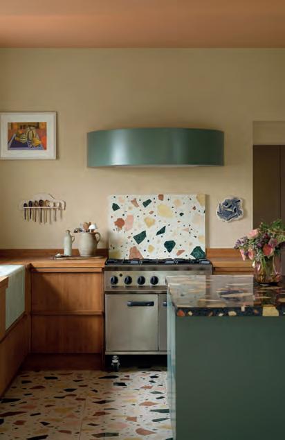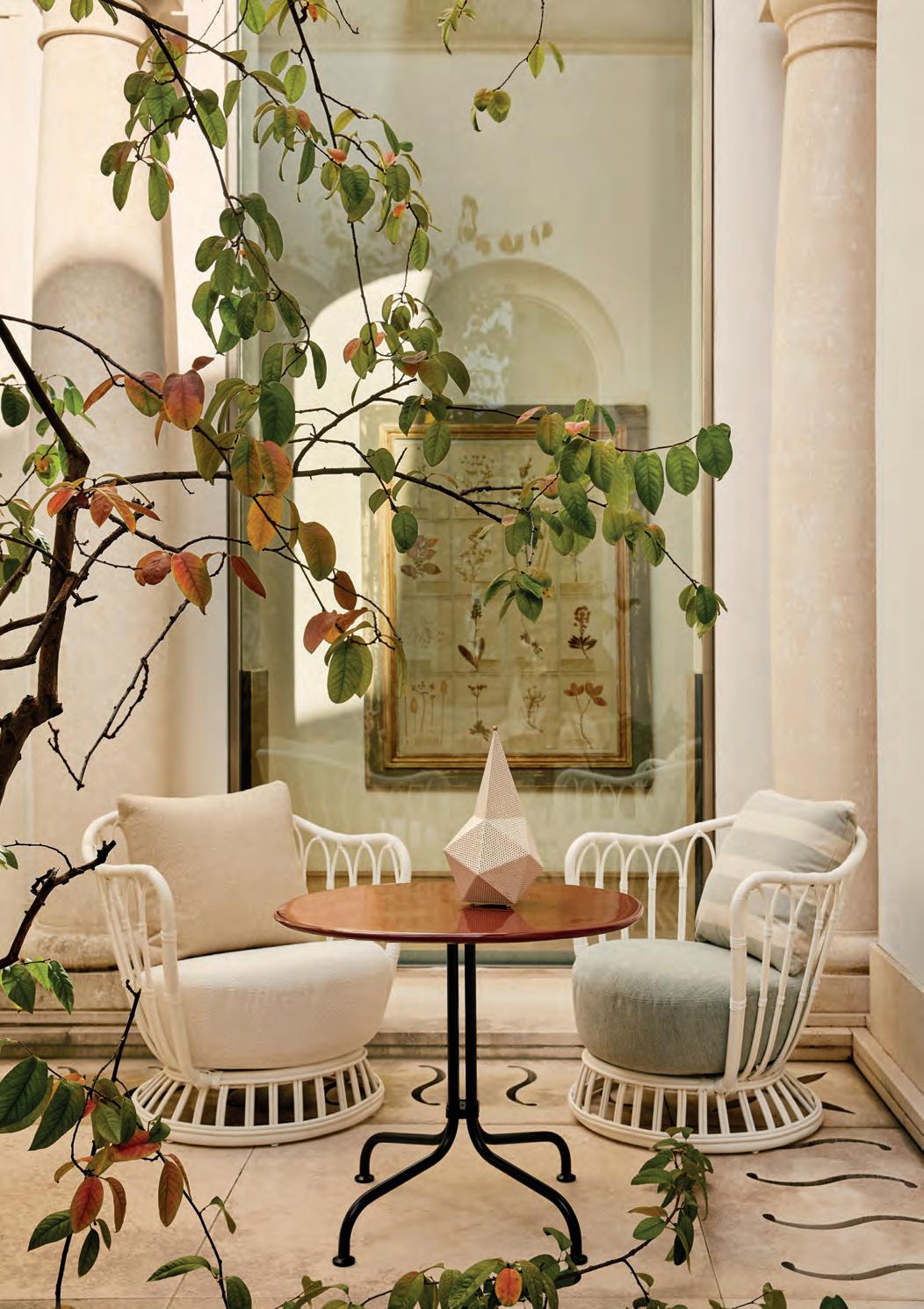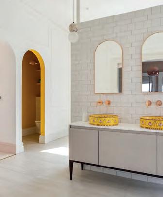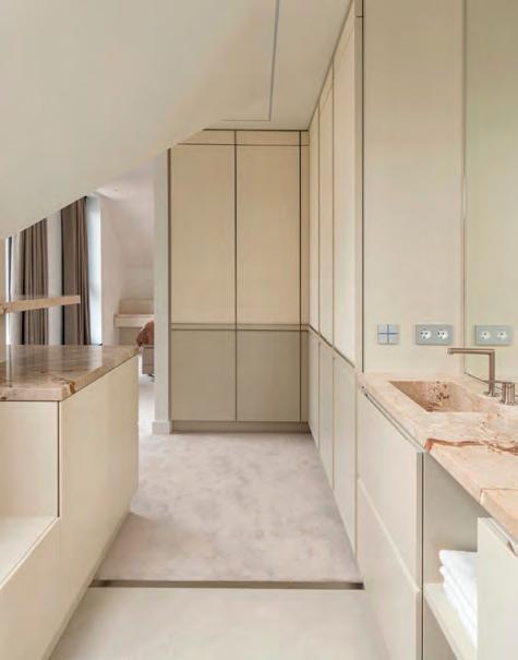 paints. I avoided stark white paint, using instead soft pigments from French brand Argile, whose nature-inspired tones set the palette. Lighting is key. Every piece of art is intentionally lit - if you love something enough to display it, you should see it properly. A home should be social. Eight can gather at our dining table, eight can relax in the living room, and there’s room for everyone to gather around the kitchen island with wine. Hosting brings me joy, so the layout supports that.