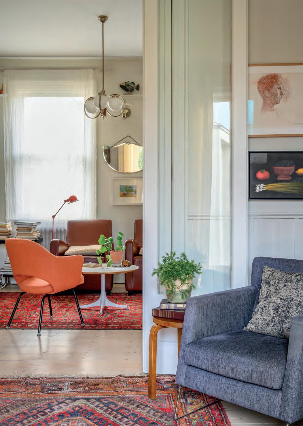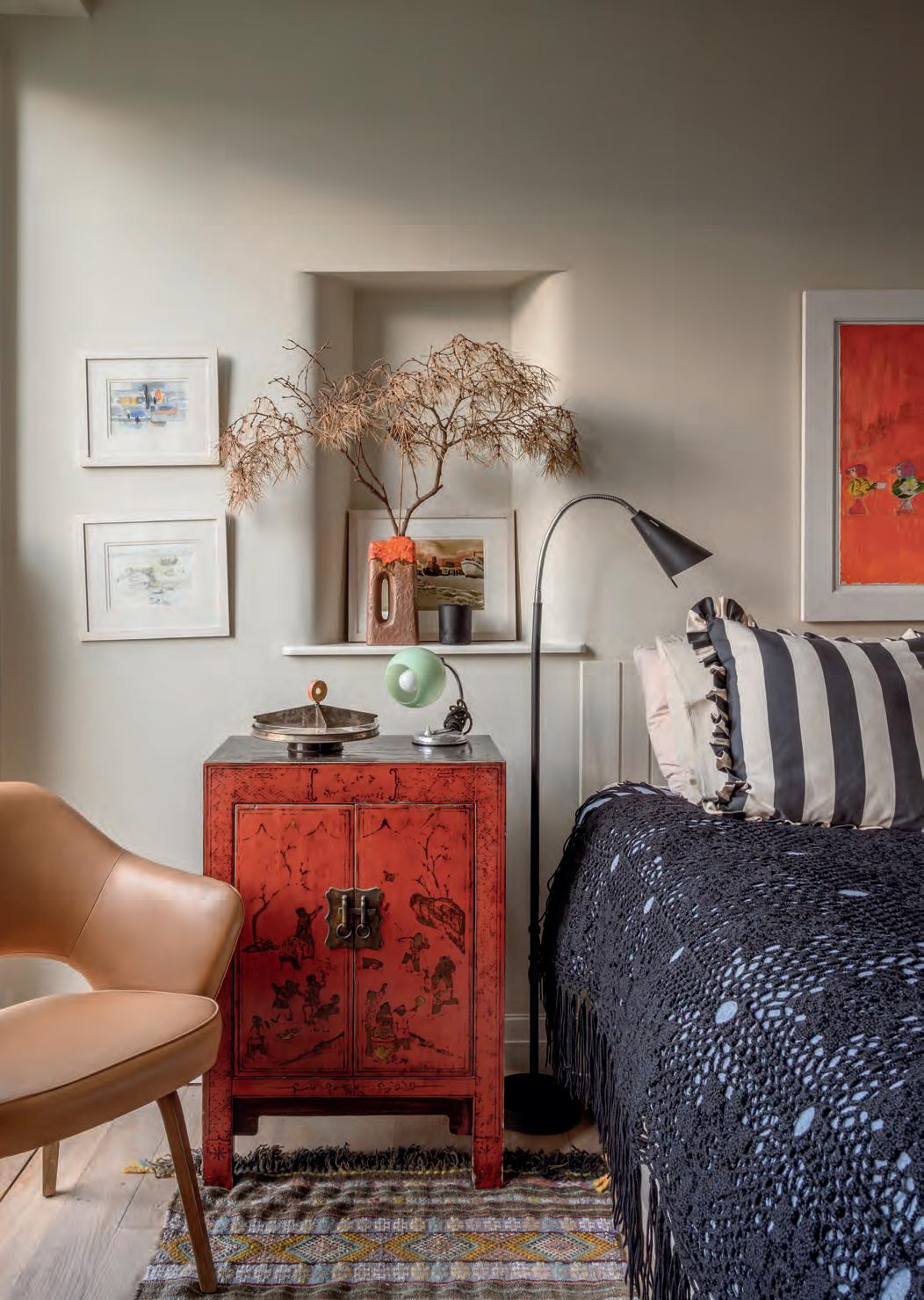 OLD-MEETS-NEW Antique furniture, vintage finds, and handpicked textiles give each room a ‘collected’ feel.