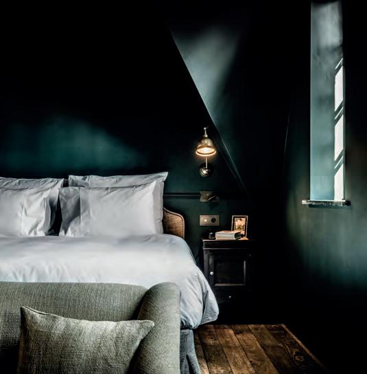 INSPIRATION FOR YOUR HOME Moving through the hotel is a masterclass in creating moody interiors without ever feeling gloomy. It’s all about layering textures, colours, and lighting with intention. Think deep greens and charcoals, warm wood, aged metals, and candlelight. The rooms feel curated - part vintage, part modern, always balanced.