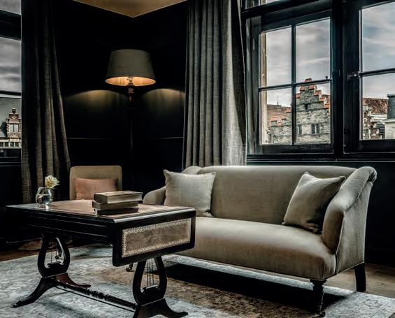 THE SPACE Push open the heavy doors of 1898 The Post, and you’re instantly enveloped in atmosphere. Set in Ghent’s former central post office, this romantic neo-Gothic landmark overlooks the Graslei and feels like a secret. For those drawn to history, good design, and the thrill of stepping into a different world, this is a memorable stay. Every detail is cocooning: deep green walls, moody lighting, creaking stairs, and the chime of towers outside your window. Original stonework and timber beams are preserved. Warm textiles, vintage desks, velvet armchairs, and brass accents add comfort. The hotel evokes a grand old library remade as a restful sanctuary. At its heart is The Cobbler, a sultry bar where bartenders shake and stir beneath cathedral-high ceilings. Outside, Ghent’s rooftops glow. Breakfast is in The Kitchen, a cosy space that feels like a stay with your most stylish friend.