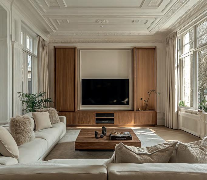 MY DESIGN ETHOS centres on responsible luxury: quality materials, natural textures, and a calm, lasting feel. During the renovation, I chose real wood, natural stone, metalwork, and VOC-free