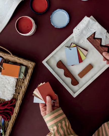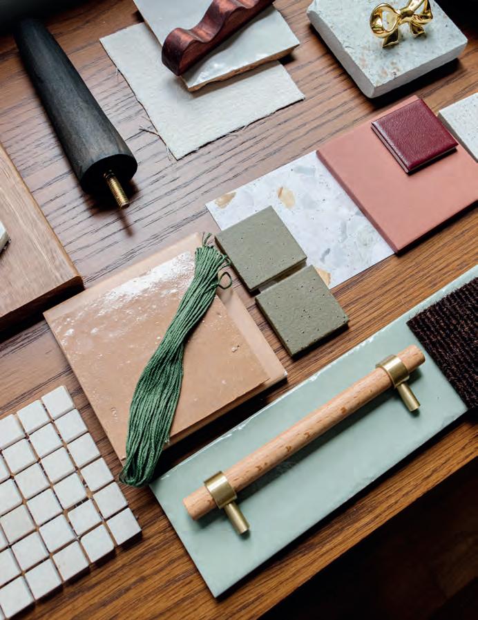 marble, rocks, hardware and jewellery, in a tray to inspire your vision for a project, room or space. She creates a vibe tray for every project, and while it’s not set in stone because projects continually evolve, it helps to have this tangible representation of the project. I am both a visual and tactile person, and I find this method of collating inspiration that I can hold in my hands always works well for my projects, no matter the size or complexity.