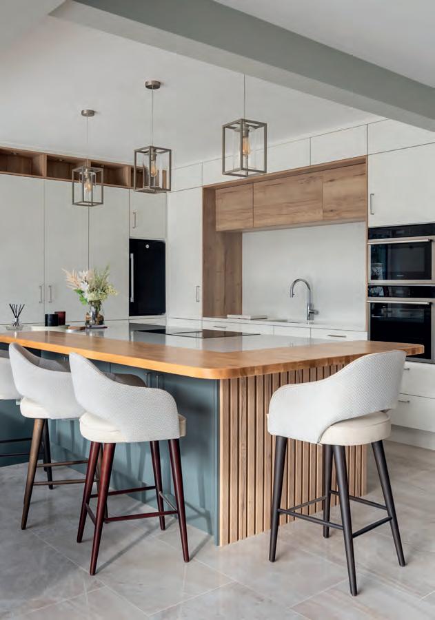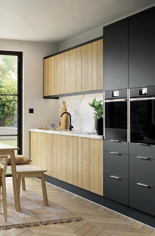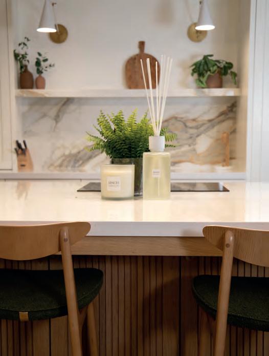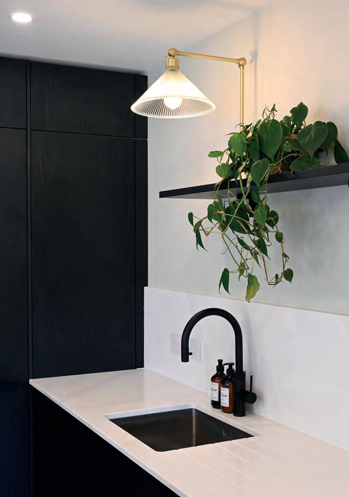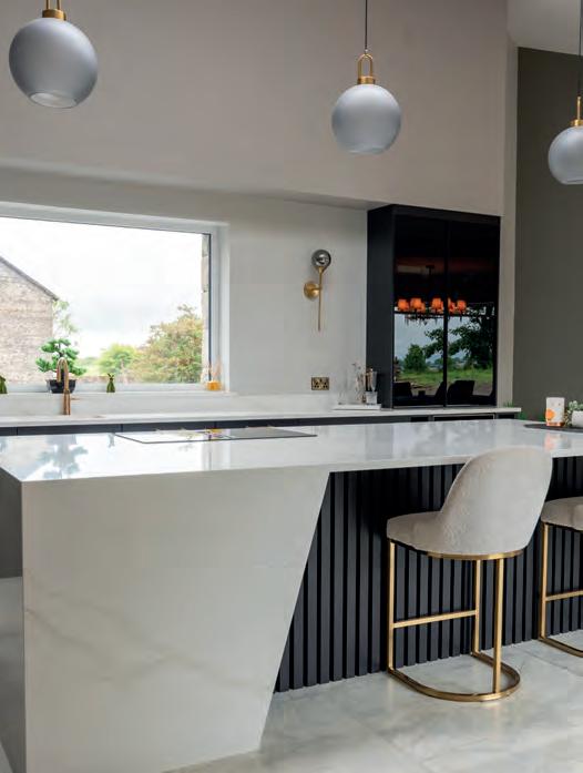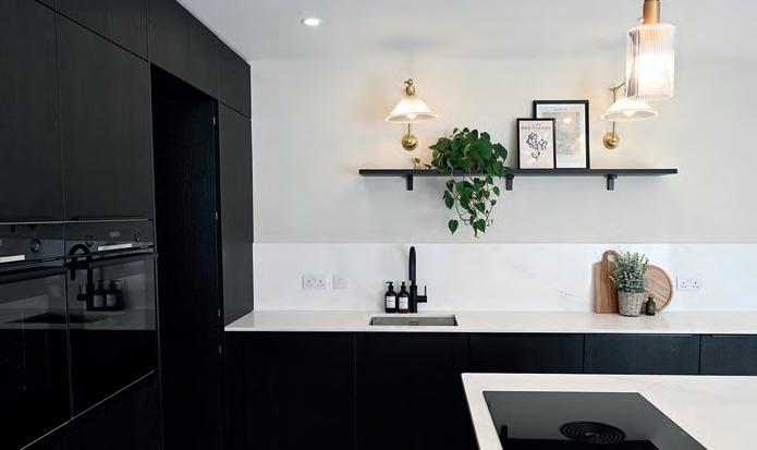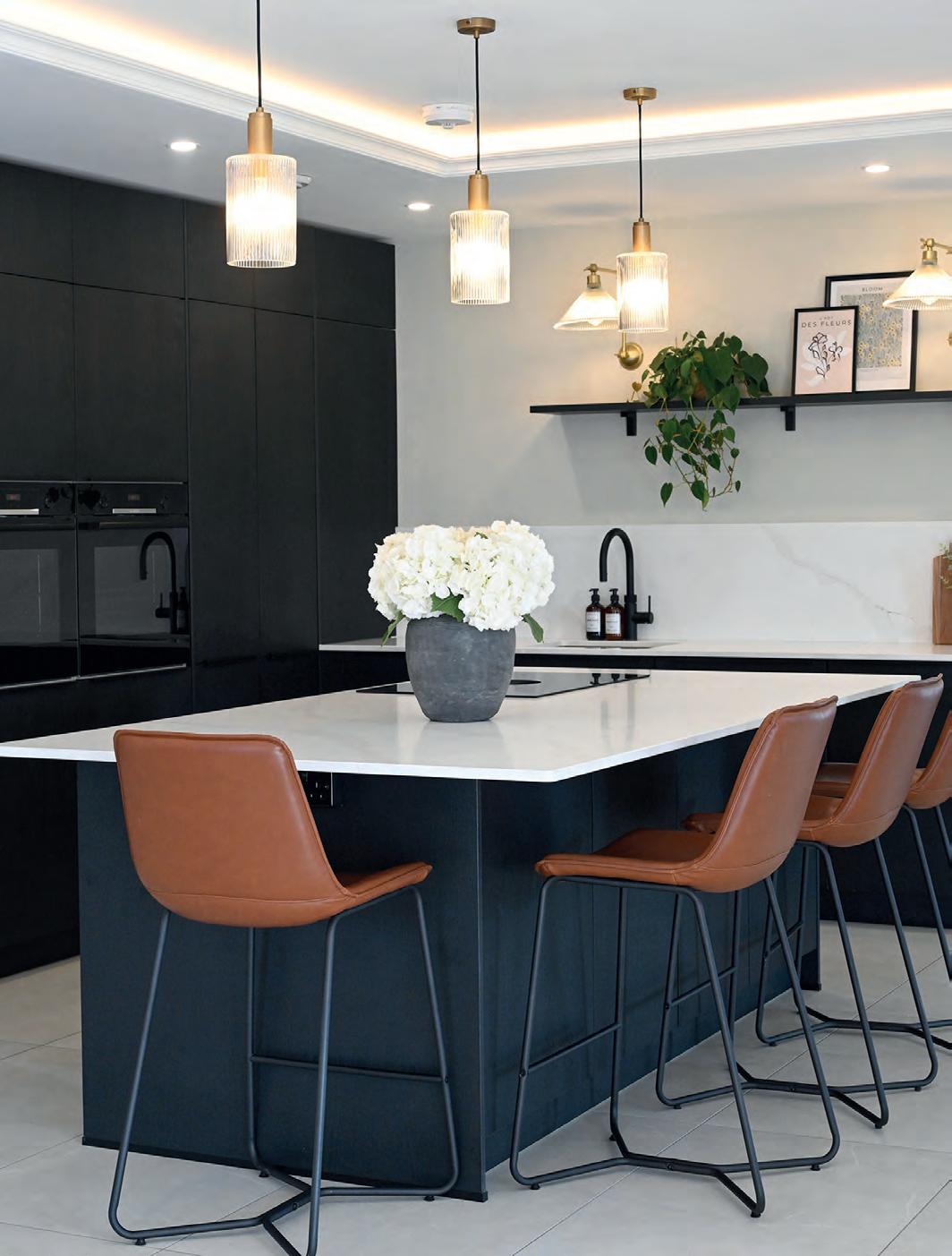 The result is a sleek, modern kitchen that earns its good looks through clever details rather than showboating. Handleless, or almost handleless; the handles are there, just beautifully hidden, the cabinetry stays fingerprintresistant, which, with two small children in the house, is less a luxury, more a survival strategy. The walk-in pantry is the feature Chloe can’t stop talking about: everything in one place, completely out of sight, completely under control. Ceiling coving with integrated LED lighting boosts a simple design strategy without complicating it. A boiling water Quooker tap, a considered layout and a design process that began with interior designer Ellen O’Shea from Enhance Interior Design, Cork meant the budget was clear from the start, and the result never seemed like a compromise. This is a kitchen built for the long haul, and it showsorganised, streamlined, timeless.
