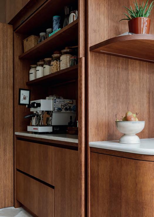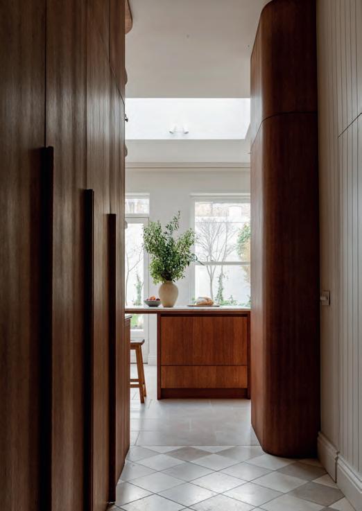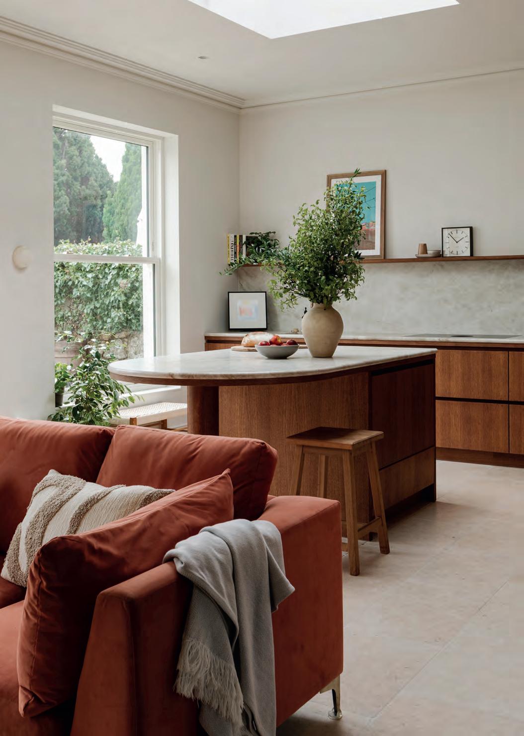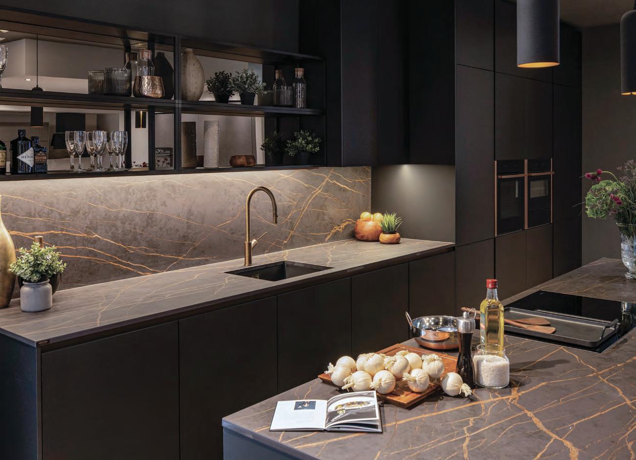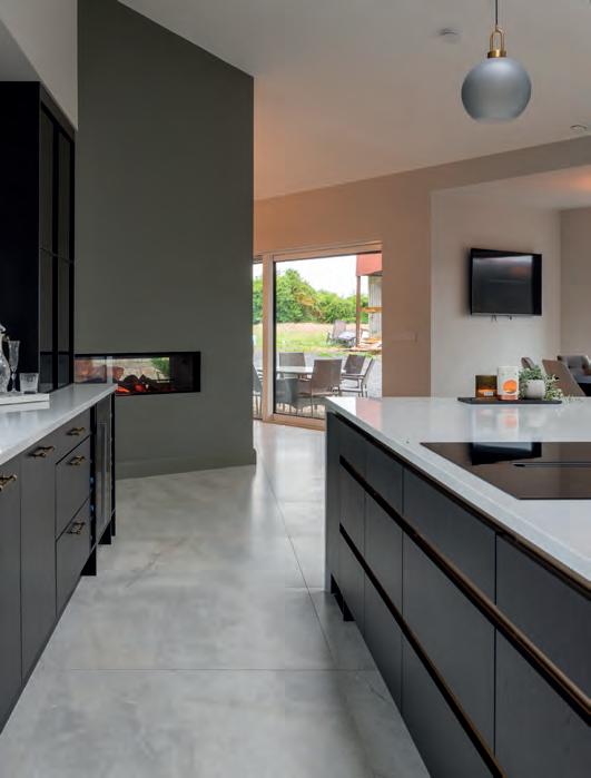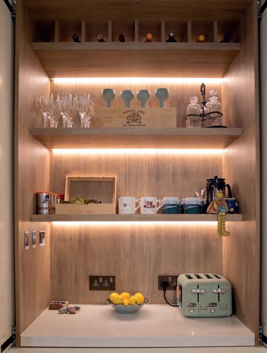 The result is a sleek, modern kitchen that earns its good looks through clever details rather than showboating. Handleless, or almost handleless; the handles are there, just beautifully hidden, the cabinetry stays fingerprintresistant, which, with two small children in the house, is less a luxury, more a survival strategy. The walk-in pantry is the feature Chloe can’t stop talking about: everything in one place, completely out of sight, completely under control. Ceiling coving with integrated LED lighting boosts a simple design strategy without complicating it. A boiling water Quooker tap, a considered layout and a design process that began with interior designer Ellen O’Shea from Enhance Interior Design, Cork meant the budget was clear from the start, and the result never seemed like a compromise. This is a kitchen built for the long haul, and it showsorganised, streamlined, timeless.