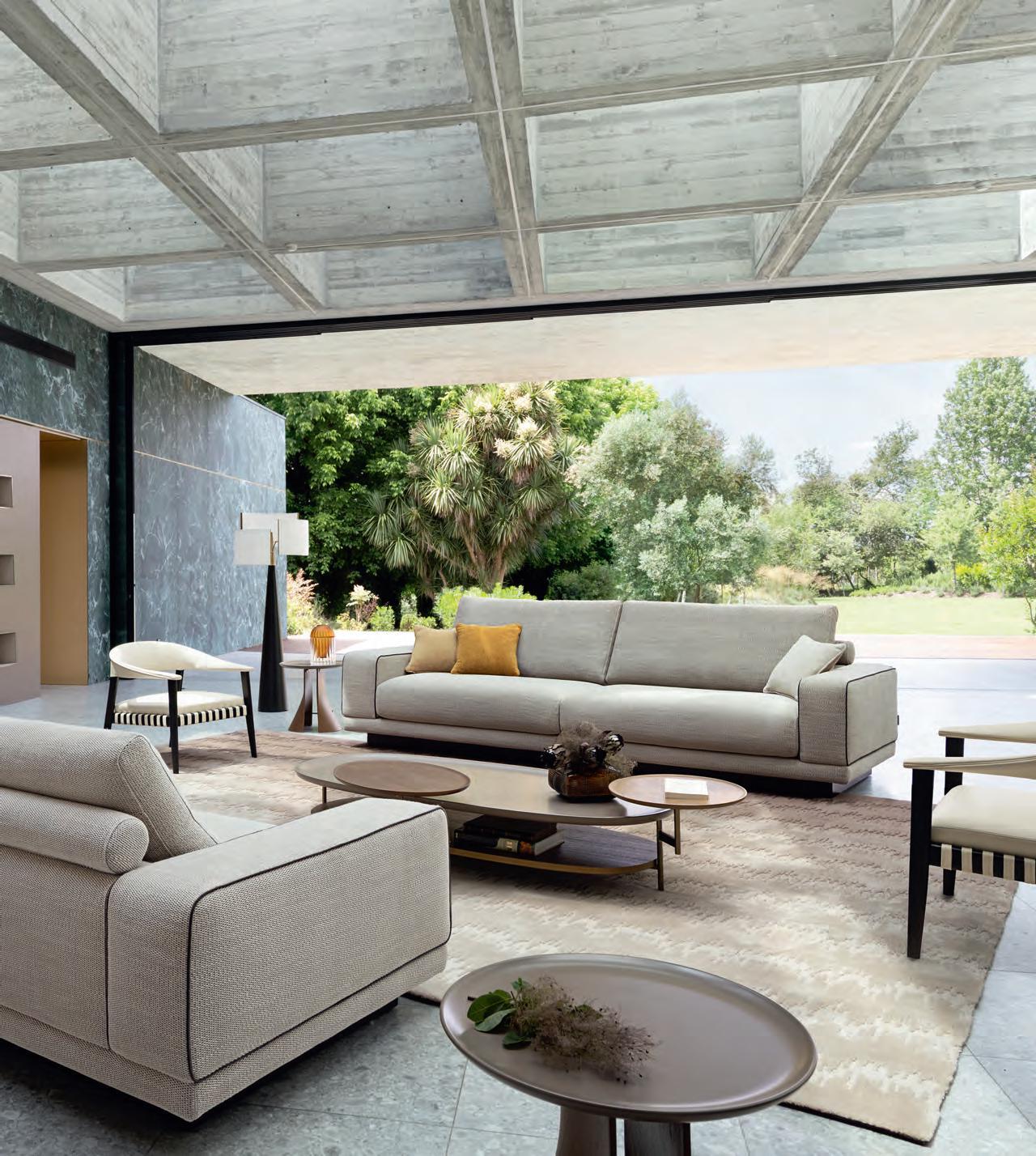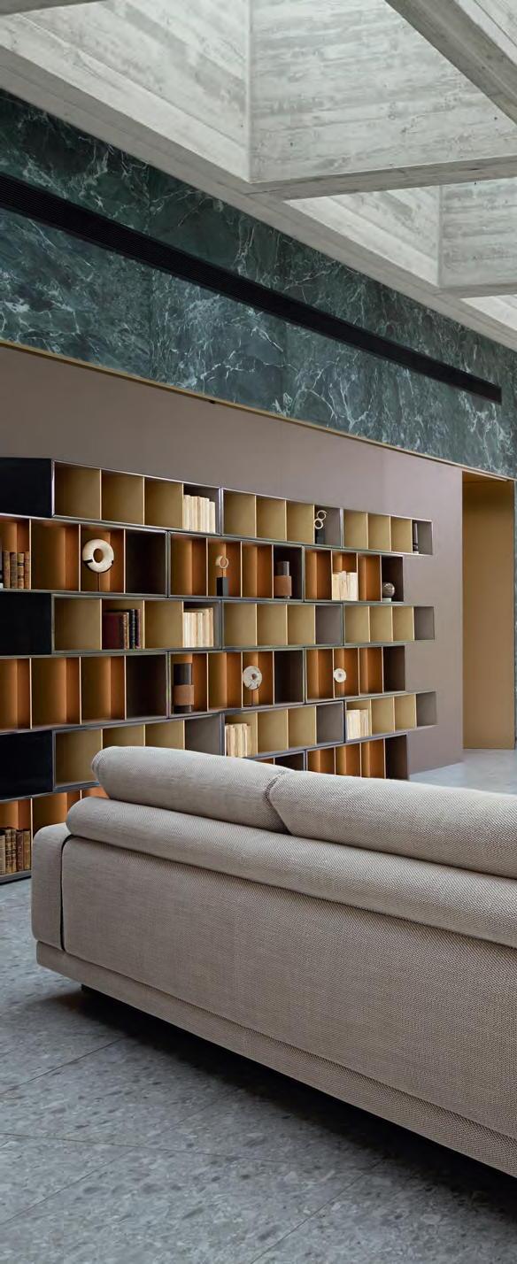 Altéa. Large 3-seater sofa, designed by Philippe Bouix. Trinta. Bookcase, designed by Fabrice Berrux. Niwa & Lan. Collection of coffee tables, designed by Dai Sugasawa.