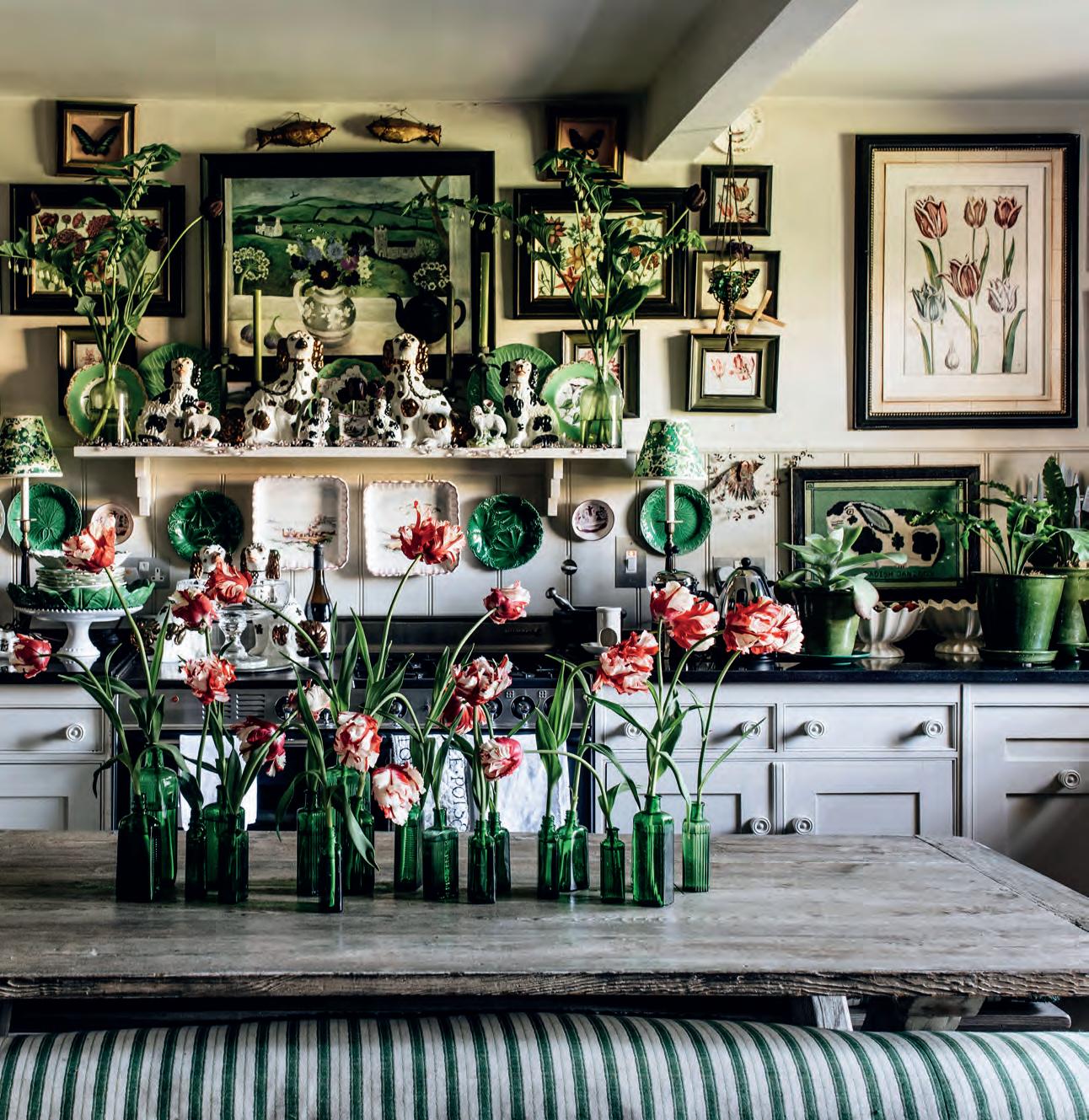 inherited, which I have to be a bit brutal with occasionally to keep it in check. My dear friend Robin Lucas has inspired me to try lots of lovely things in the garden, like the lilies. I also adore an orange and apricot tulip and think the drawing room really sings when I have big jugs of them about the place.