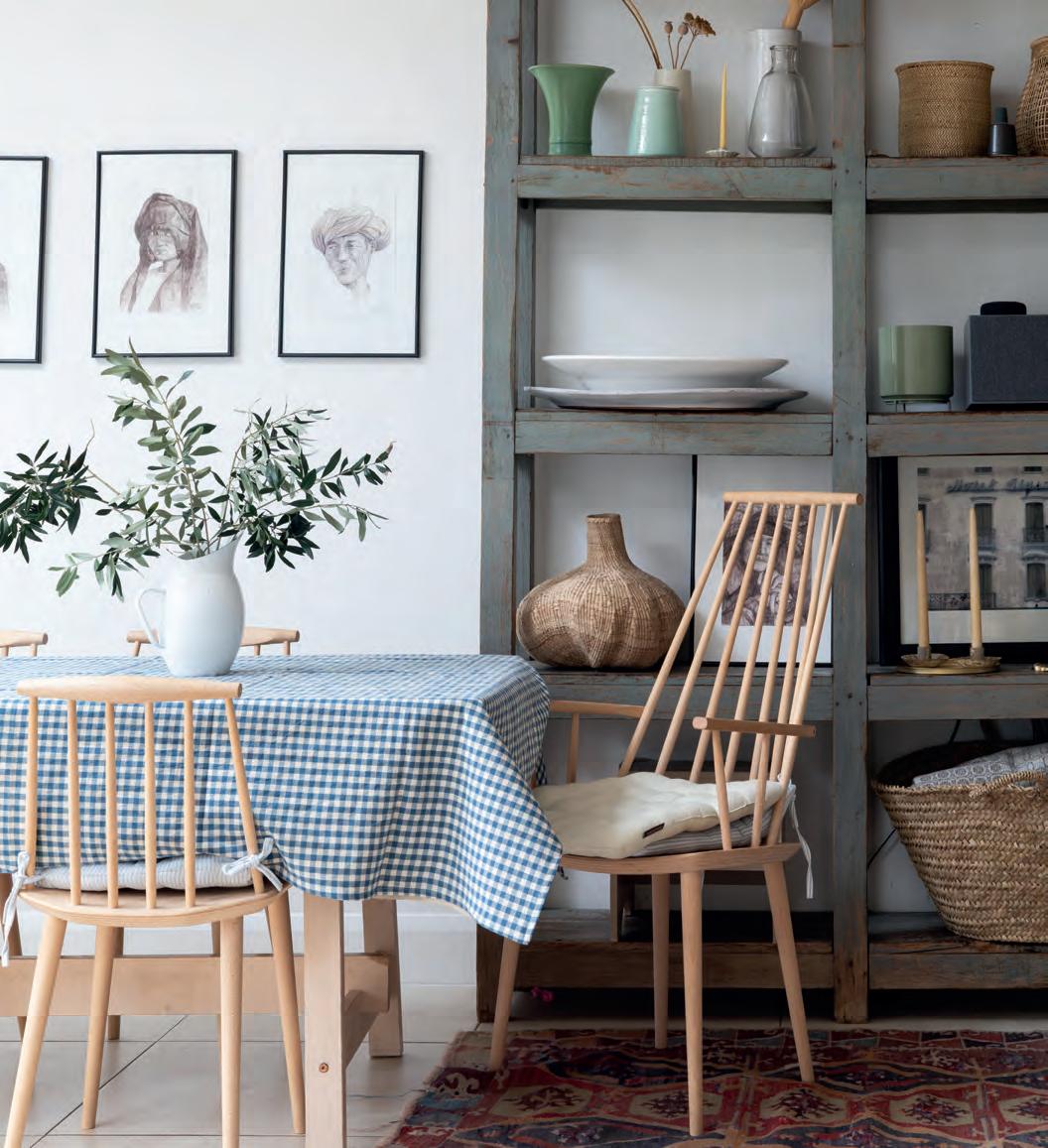 HOW DOES NATURE FIND ITS WAY INTO YOUR HOME? Nature plays a huge role in my everyday life. My bedroom overlooks the garden at the rear of the house, so it is always the very first thing I look at when I wake up. It’s the perfect start to the day. I am also forever dragging bits and pieces of the garden inside, whether it’s freshly cut flowers, pots of seasonal scented bulbs, lovely abandoned nests that I have found and rescued from the ground (I have a dear little collection of them in my downstairs loo) or the odd beautiful lichen-covered twig that I stick somewhere to remind me that the simple things are often the most emotive and inspirational. All of these tiny treasures make me feel grounded and connected to the outdoors. I also have a reasonably healthy obsession with the small selection of songbirds and insects I have in the garden. I love watching them come and go as they feed from the feeder or bathe in my water bowl, or flit about from flower to flower in my wildflower meadow and through the borders.