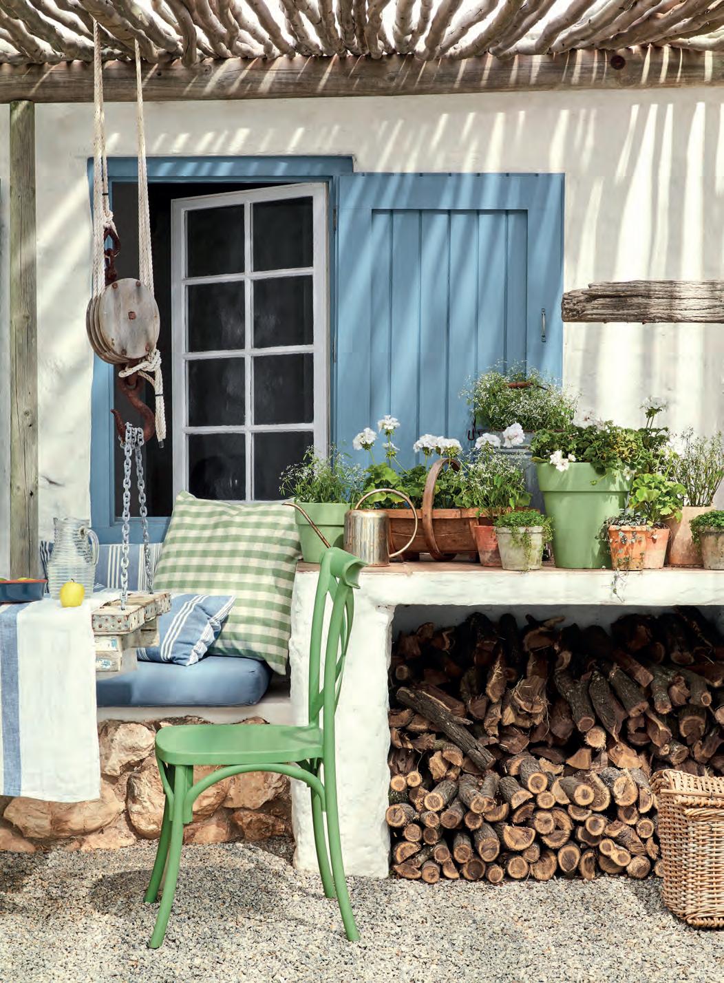 9 SPRAY PAINT YOUR GARDEN FURNITURE Jill Leavy's mum painted the patio furniture red to match the roof. It's so effective. (Schoolhouse Rocks, pg 48).