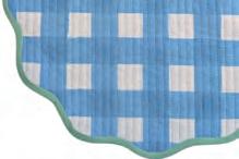 CHECK MATE Blue and green should never be seen - unless, of course, they’re reimagined in LNH Edit’s new chequered textile collection, where the pairing feels effortlessly right for summer entertaining. Gingham napkins from €32.50, tablecloths from €78, Lnhedit.com
