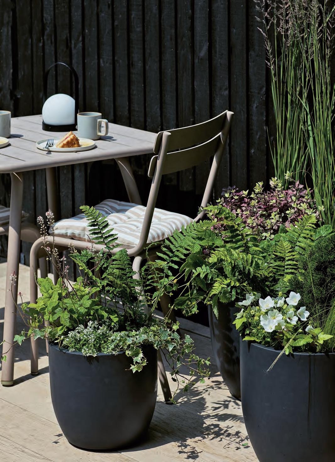 1 It’s a good idea to get the pots into their final positions before you start planting, as they can get heavy once full of soil. Positioning them close to each other as a trio makes a real statement, but they work beautifully individually as well.