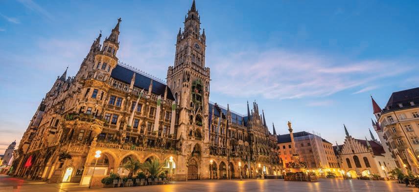 in Marienplatz and the Frauenkirche Cathedral, as well as a coach tour to the magnificent Nymphenburg Palace and gardens. A visit to the BMW Museum and factory adds a modern contrast, showcasing innovation and design at their finest. Time is also set aside for delegates to unwind, go shopping and explore the city.
