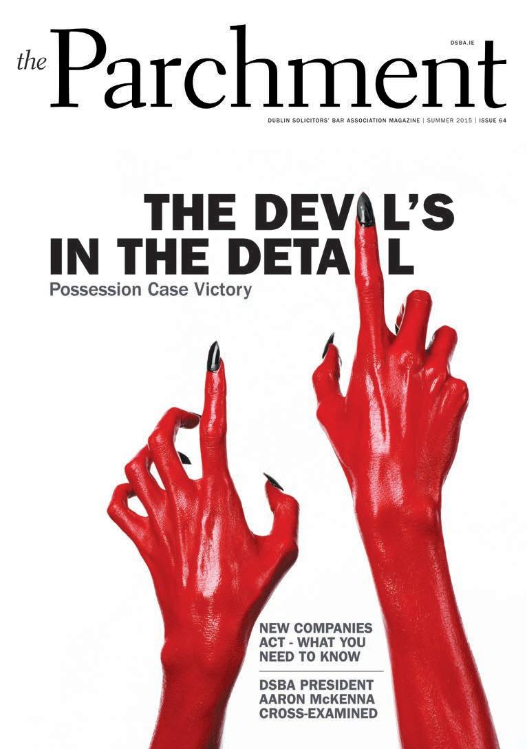 In this issue Felix Larkin, historian and author, has brought lightness and satire to the Parchment with his most enjoyable article on legal cartoons. Well-known environmental solicitor Fred Logue shares his views on the proposed reforms to judicial review and how Ireland might position itself as one of the leading European jurisdictions for environmental law.