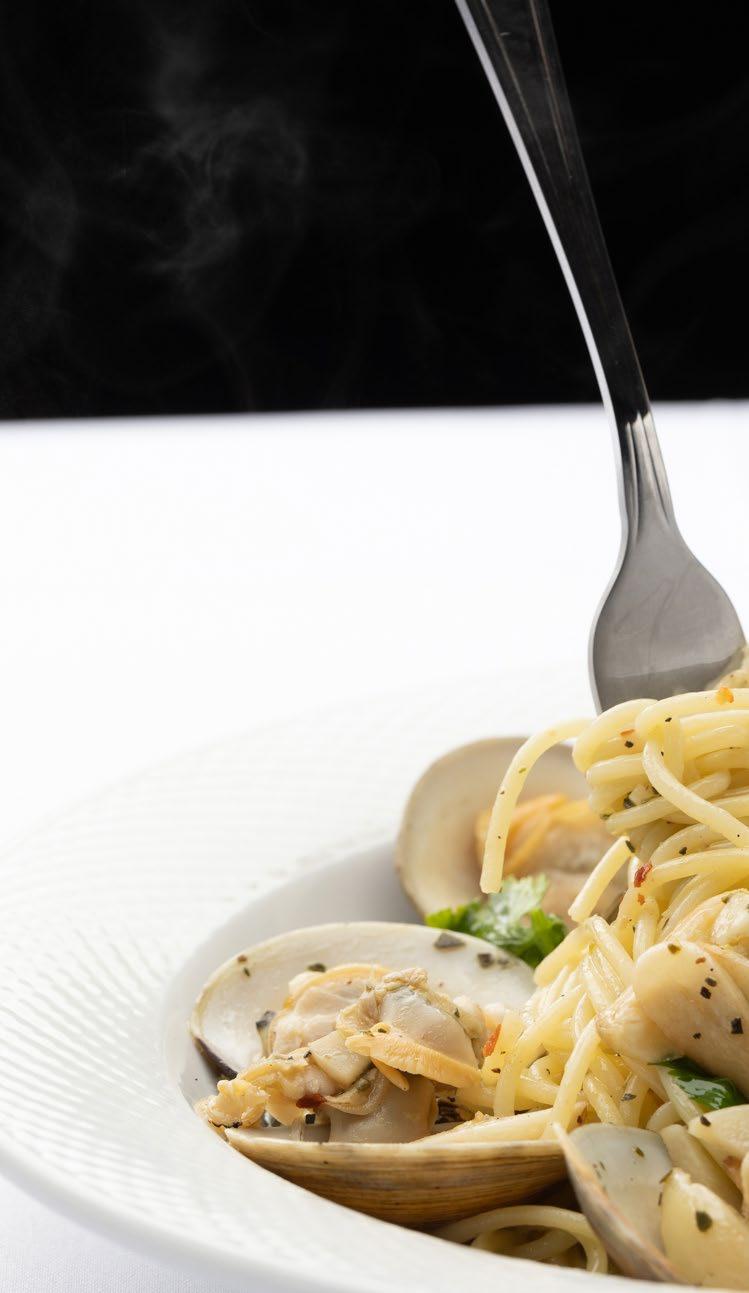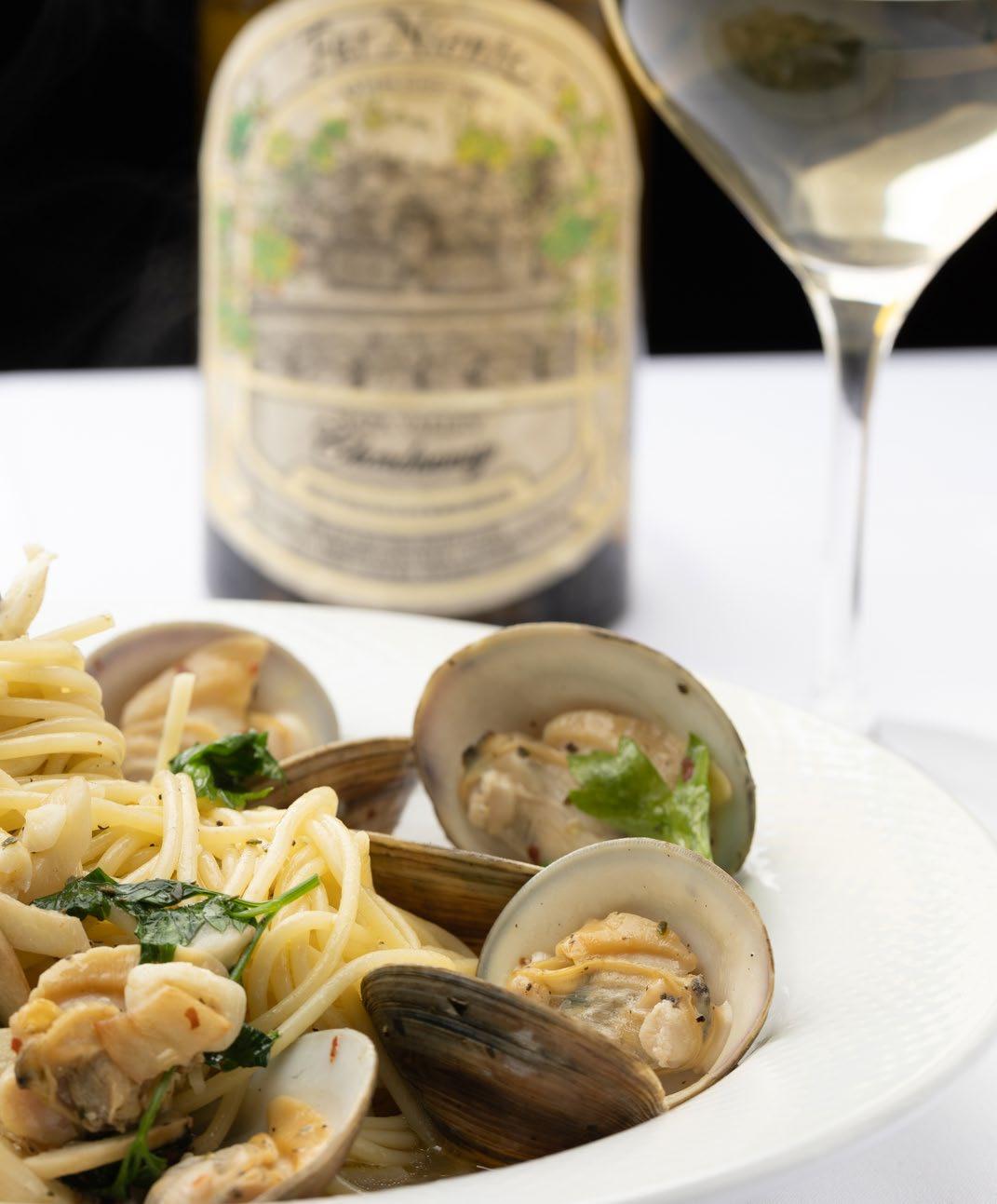 The selection of freshly made in-house Pastas are woven into dishes such as Tagliolini with sea scallops, shrimp, cultured mussels, little neck clams, garlic, fresh herb; Penne with portobello mushrooms, fresh chopped tomato, garlic, olive oil; and Rigatoni with roasted eggplant, fresh