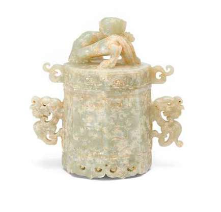 A CHINESE GREY AND WHITE JADE CARVING OF A SQUIRREL AND GRAPEVINE, QING DYNASTY, 19TH CENTURY