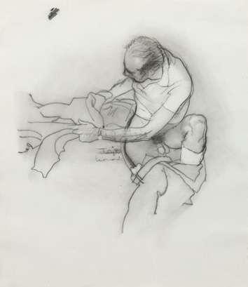 signed with initials RZ lower right; red, black and brown chalks on paper; 64 x 49cm; 25¼ x 19¼in (91 x 75.5cm; 35¾ x 29¾in framed)