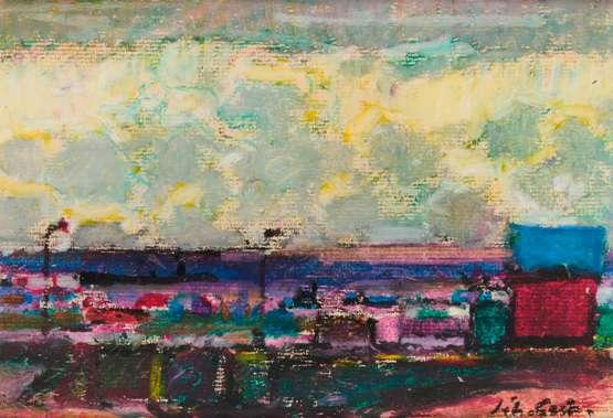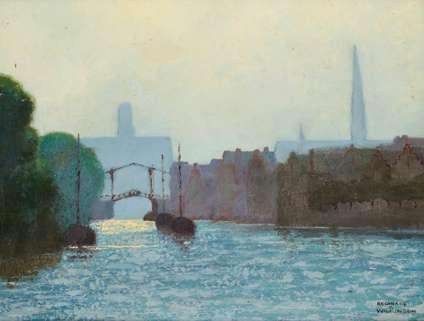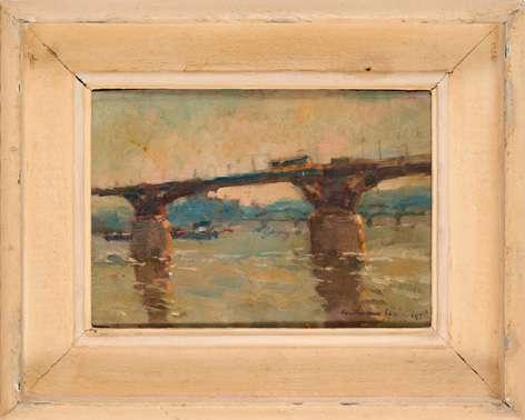 The present work appears to be a view of Margaret Bridge in Budapest which crosses the Danube to link Buda and Pest and Margaret Island. The original bridge was accidentally destroyed in November 1944 by occupying German soldiers and rebuilt largely as before in 1948.
