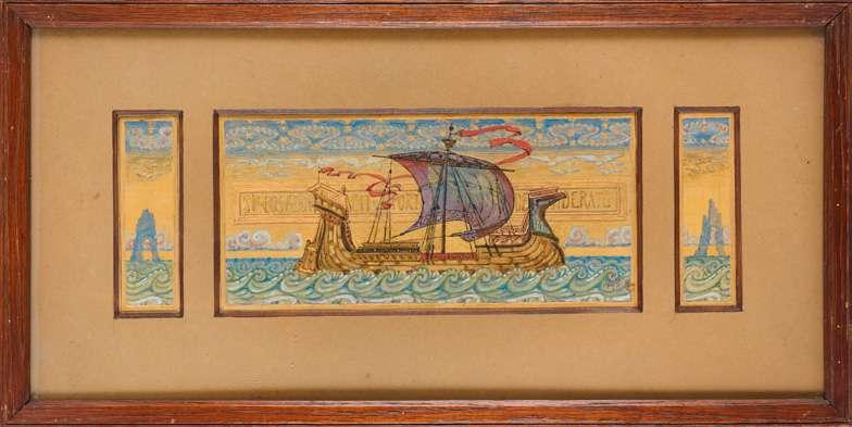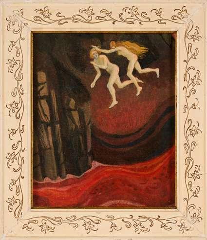 Gallen Kallela exhibited Ad Astra in Dresden and Gothenburg in 1895, thus whoever painted the present work may have seen Gallen-Kallela’s painting in one of these locations, suggesting the artist could indeed be Nordic or possibly German. Gallen-Kallela painted two versions of Ad Astra, one of which is in the Gyllenberg Museum, Helsinki, and the other in the Art Institute of Chicago.The present variation appears to be in its original Art Nouveau style frame. 1