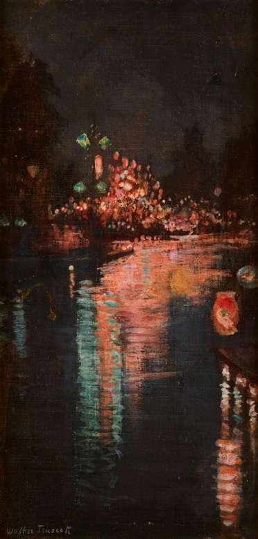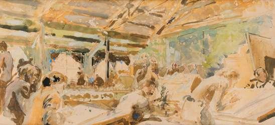 The present work depicts wreaths laid at the base of the Royal Artillery Company Memorial, Hyde Park Corner after Remembrance Day. The memorial, to commemorate the 50,000 soldiers of the Company who lost their lives in the First World War, was designed by Charles Sargeant Jagger and unveiled in 1925. The son of a picture framer, Frank Sully studied at the Hammersmith School of Art and the Académie Julian, Paris. He moved with his family to Cornwall in 1920, but returned to work in London.