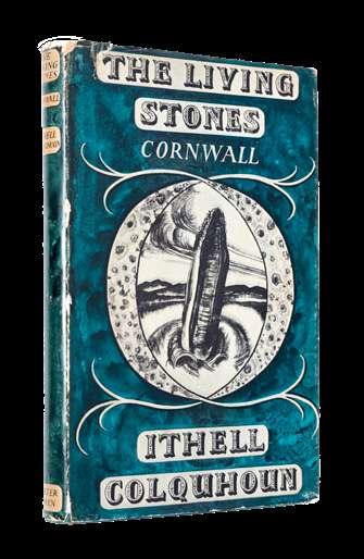 ITHELL COLQUHOUN, THE LIVING STONES, CORNWALL, published by Peter Owen, First Edition, 1957, Hardcover, with the original dust jacket designed by the author, blue cloth-bound boards and title in gilt lettering on spine, it contains four black and white photographs and twenty-four line drawings by the author at the end of each chapter, and on the frontispiece (204pp).