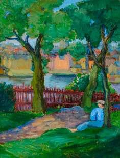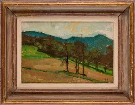 signed and dated Cs.Farkas Loerinc ‘49 lower right; oil on panel; 15 x 18.5cm; 6 x 7¼in (26 x 32cm; 10¼ x 12½in framed)