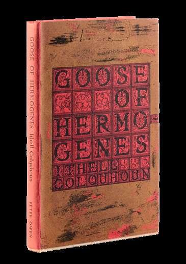 ITHELL COLQUHOUN, GOOSE OF HERMOGENES, published by Peter Owen, First Edition (1st impression),1961, Hardcover, 115pp with a dust wrapper designed by the author, original white paper-covered boards with titles in gilt to the spine. This is her only novel which lurks somewhere between the territory of Beardsley and Mervyn Peake’s Gormenghast… shudderingly enjoyable (The Guardian). A rare copy. The British author Muriel Spark began working as an editor for Peter Owen in the mid-1950s while waiting for her first novel to be published. She found this title ‘almost impenetrable’ to edit, but it has since been hailed as a key work in Surrealist and esoteric fiction and considered a ‘Gothic’ novel which took over twenty years to write. It tells the story of a girl lured to an island by her uncle to help him in his search for the Philosopher’s Stone.