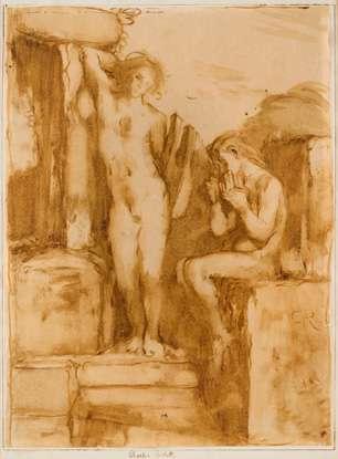 with the blue Carl Rolas du Rosey collection stamp (Lugt 2237) lower left; pen and brown ink on paper; 13 x 11cm; 5¼ x 4¼in (48 x 44cm; 19 x 17¼in framed)