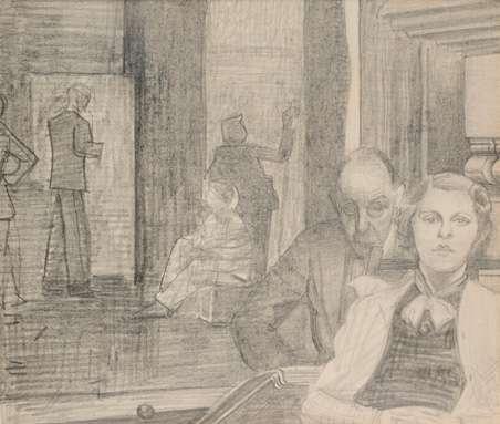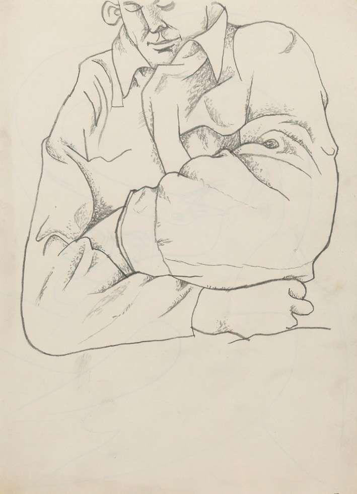 Painted in the late 1930s. Moynihan enrolled at the Slade in 1928 and in the early 1930s explored abstraction before becoming interested in social realism and the work of Victor Passmore,William Coldstream and the Euston Road School. During the War he served first in the Royal Artillery, then with the Camouflage Unit before becoming an official War Artist.