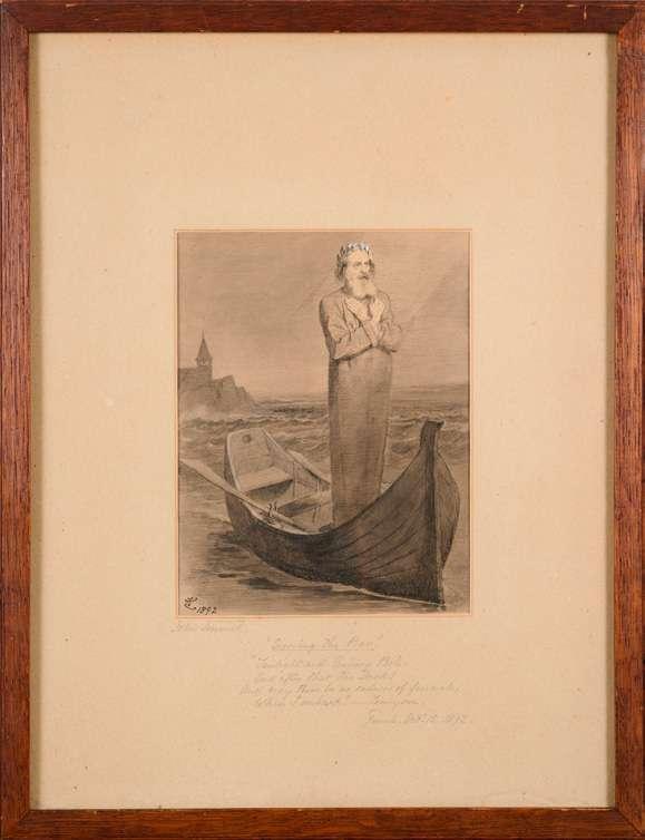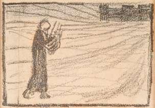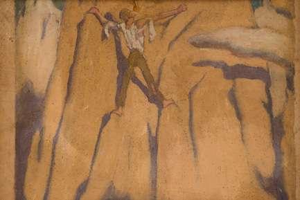 JRT notes: Mystery Picture, signed with an indecipherable monogram and dated 1897. It is clearly some sort of parody of Gallen-Kallela’s Ad Astra and I suspect Finnish or at least Scandinavian.