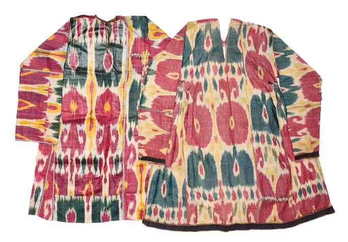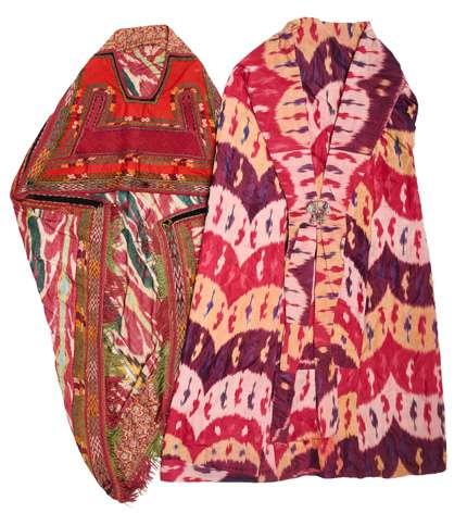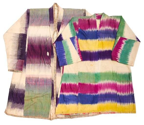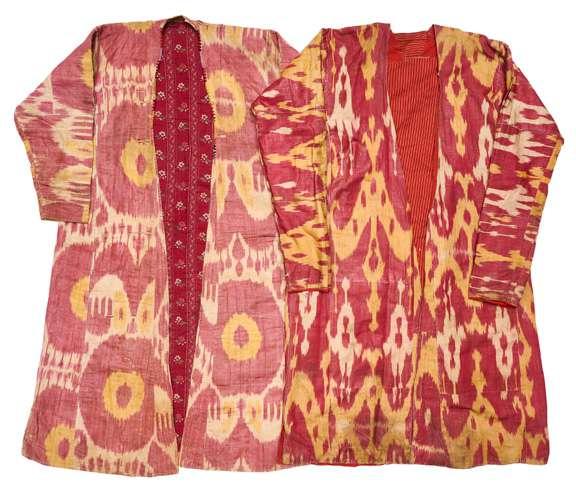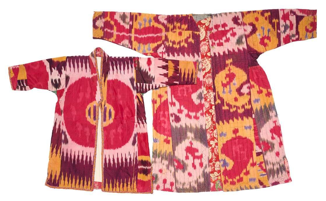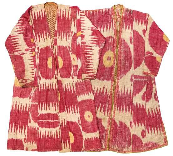 TWO IKAT WOMEN’S ROBES (MUNISAK), UZBEKISTAN, LAST QUARTER 19TH CENTURY