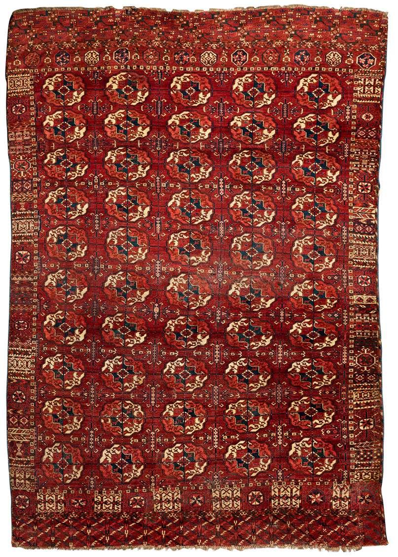A TEKKE CARPET, WEST TURKESTAN, CIRCA 1900 with ten rows of five guls, gul and sunburst border, approximately 280 x 192cm