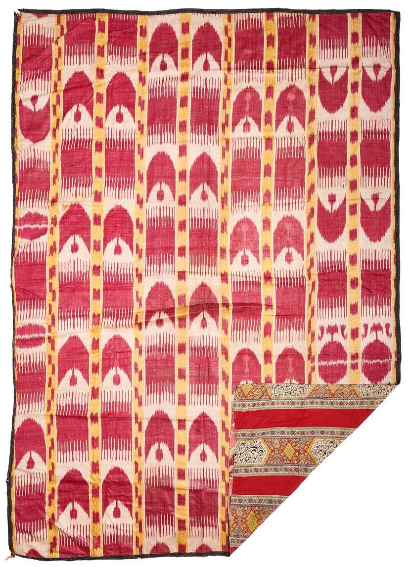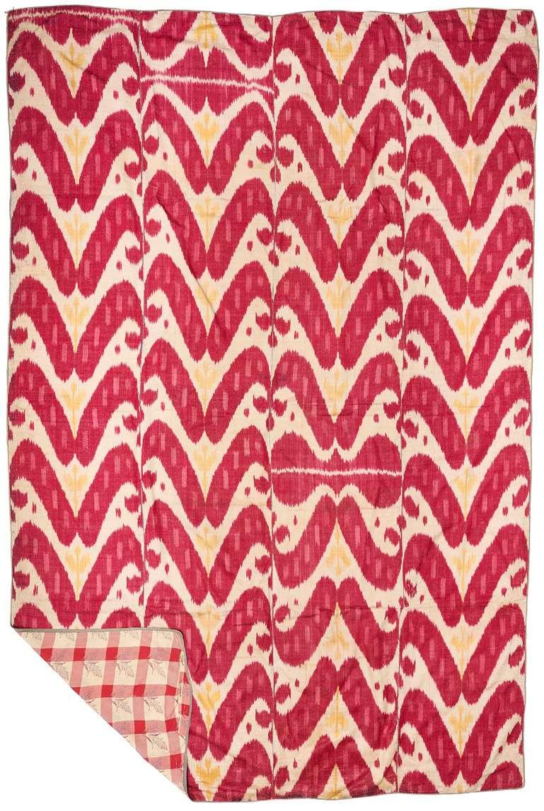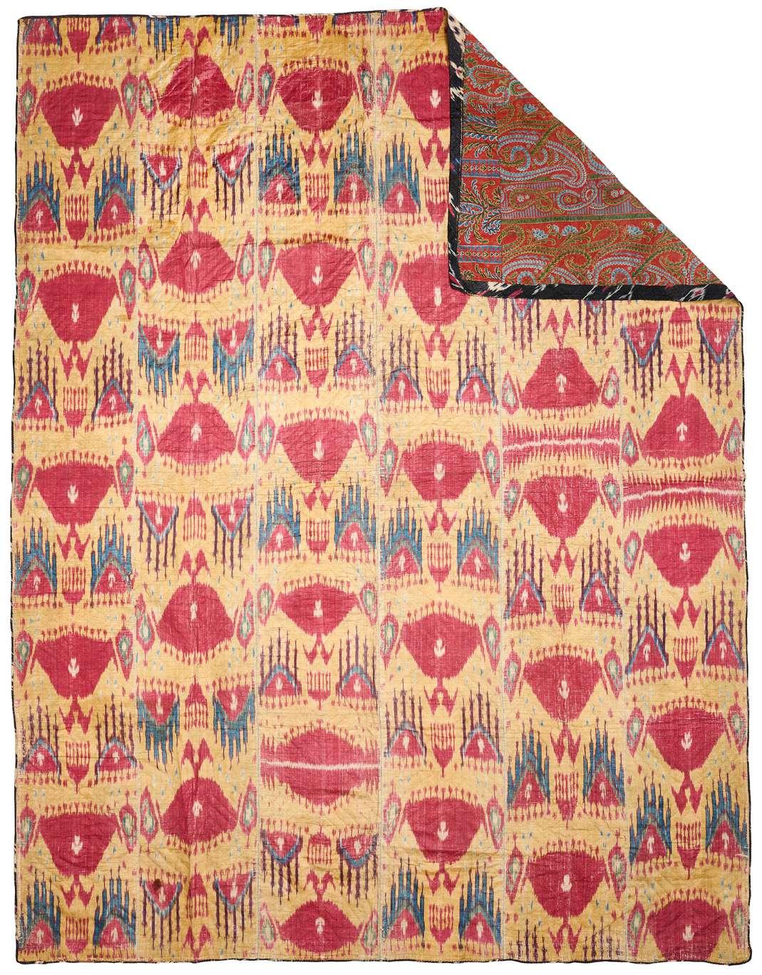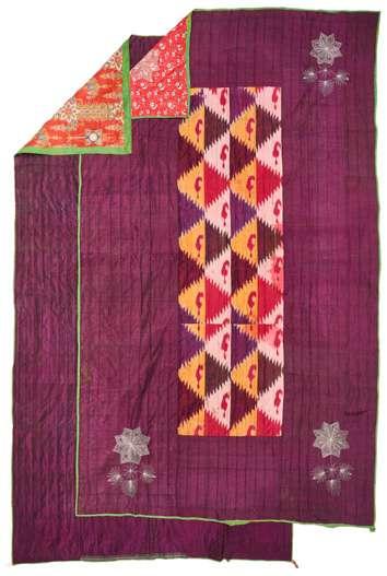AN IKAT AND SILK QUILTED PANEL, UZBEKISTAN, LATE 19TH/ EARLY 20TH CENTURY