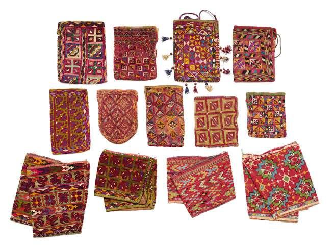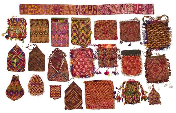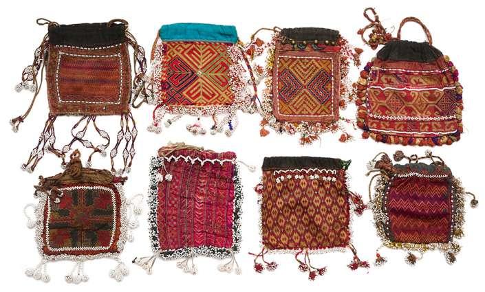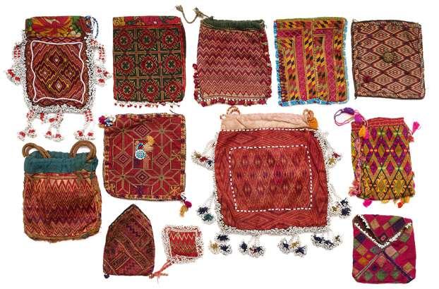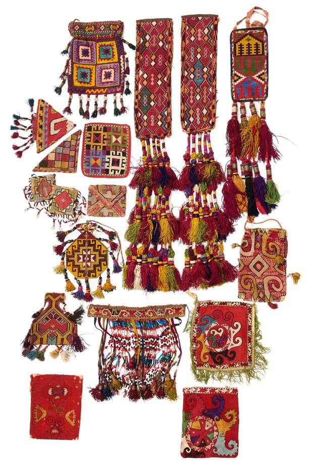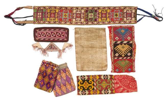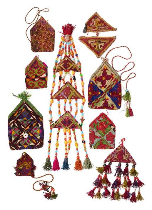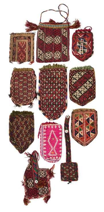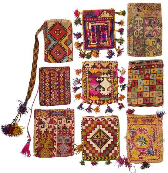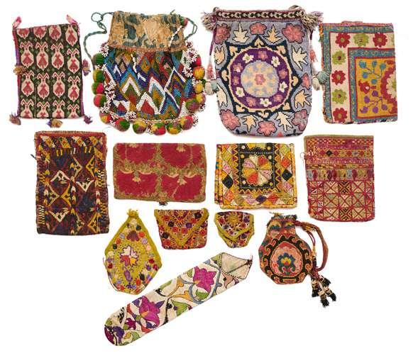 including nine small tea or sweet pouches (suyjilik and cay halta), an amulet and a small bag (11)