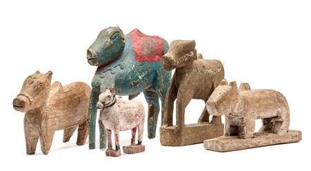 variously decorated with buttons, beads and metal tokens, one with bones and one with plastic flowers (10)