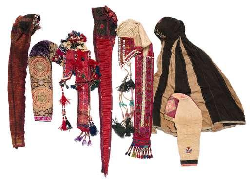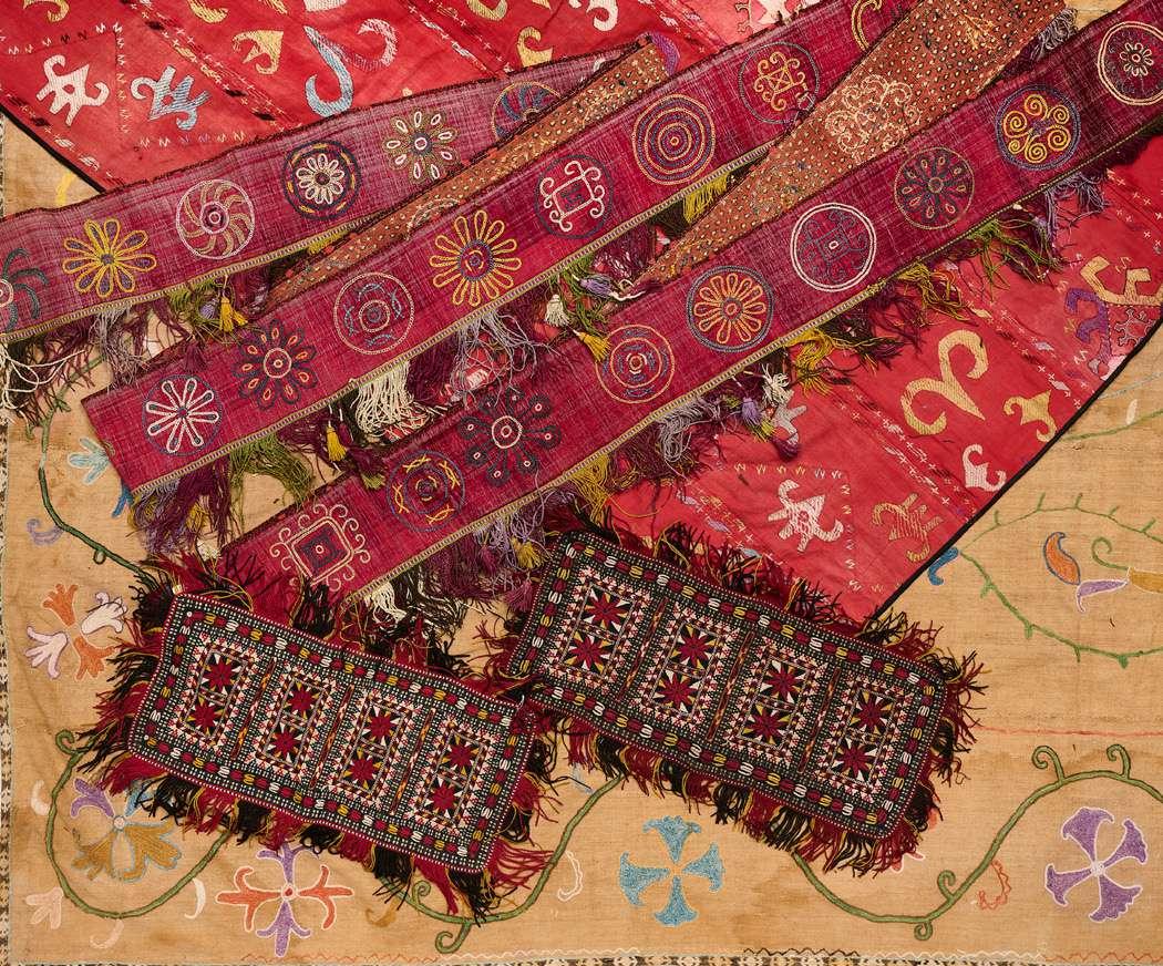 including four Pashtun embroideries, a Kirghiz neck ornament and ten others including a headband, amulet, pouches and embroidered bands (15)