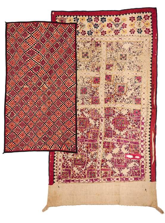 A BANJARI SILK AND MIRRORWORK EMBROIDERED PANEL AND A HANGING, NORTH INDIA, 20TH CENTURY
