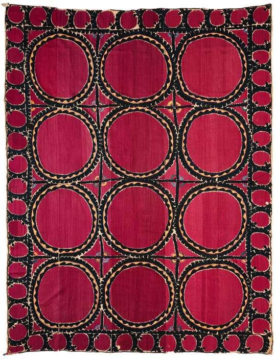 A PISKENT WOOL AND SILK EMBROIDERED SUZANI, UZBEKISTAN, LATE 19TH CENTURY